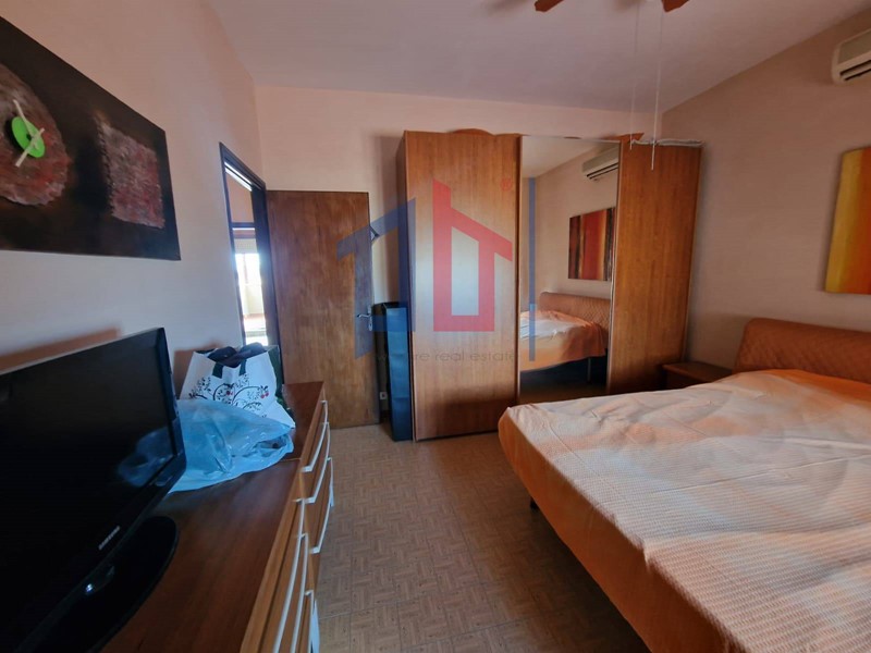 Il salone di generose dimensioni gode di una vista mozzafiato sul mare, la camera matrimoniale vanta di uno spazio ampio e luminoso, e grazie al soffitto alto l'intero attico risulta asciutto in inverno e arieggiato in estate.