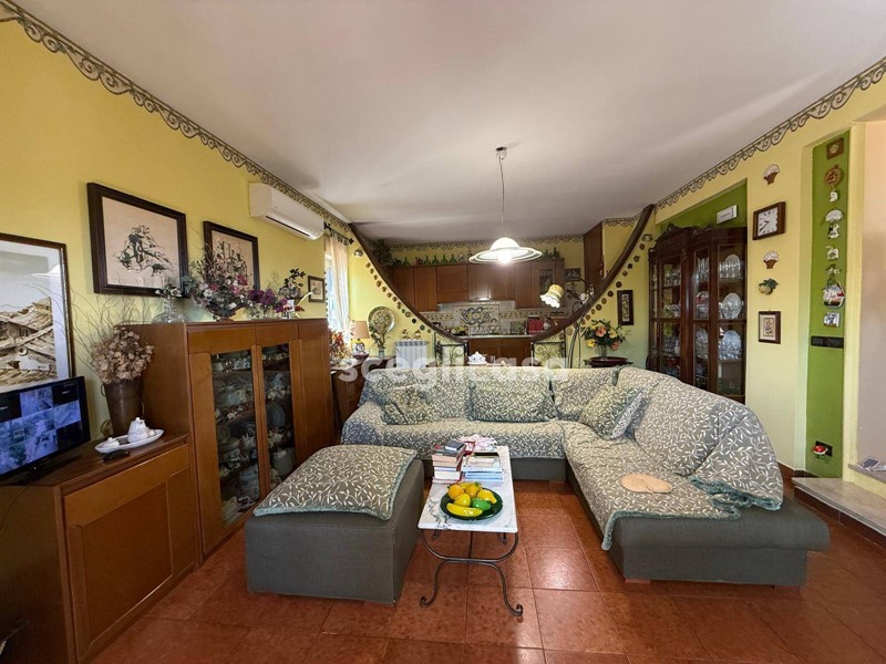 Internamente la villa ha una quadratura di 224mq ben disposta, ed è composta da: al piano terra ingresso su un portico diviso a sinistra con cucina e ampio soggiorno, invece a destra un doppio salone luminoso, infine un bagno con doccia. Da una scala interna si accede al primo piano, dal disimpegno si raggiunge la cucina con affaccio al terrazzino, 3 comode camere da letto, di cui due con affaccio al balcone, un ripostiglio, infine un bagno con vasca, rifinito nei minimi particolari; sempre da una scala interna si arriva al secondo piano dove è presente un terrazzo super panoramico e spazioso, da sfruttare nei momenti con attorno gli amici, i familiari, con le persone a noi care, organizzando un pranzo o una cena con tutte le luci che illumina la città.