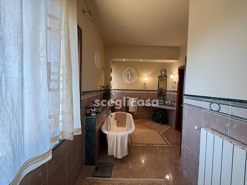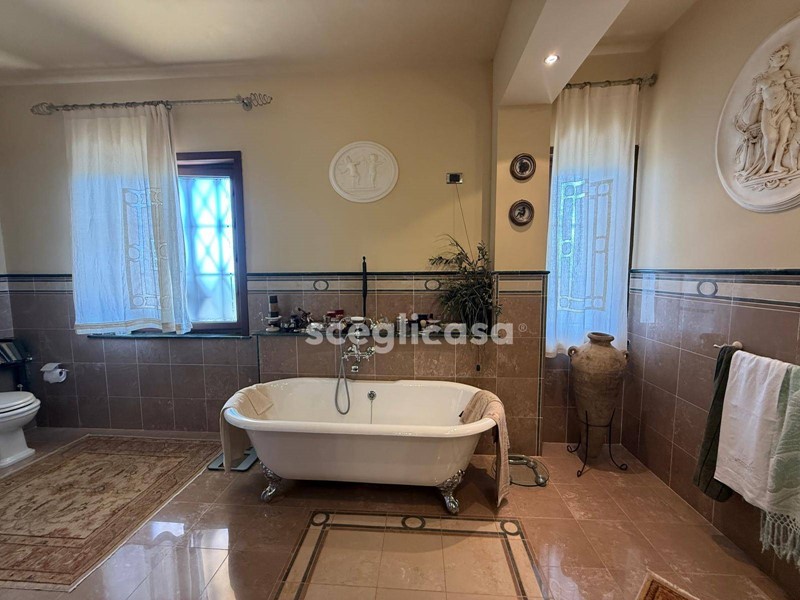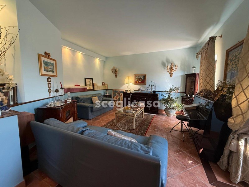 La villa, dislocata su tre elevazioni e rifinita con materiali di pregio, è una vera e propria gemma. Dal suo interno, ogni finestra incornicia una vista incantevole che si perde all'orizzonte, regalando un'atmosfera di pace e serenità.