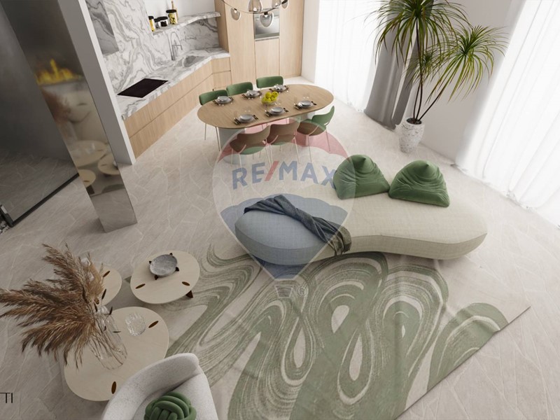 Proponiamo due soluzioni, una con tre camere e due bagni ed una con due camere e due bagni, entrambe godono di una zona giorno grandissima con cucina open space.