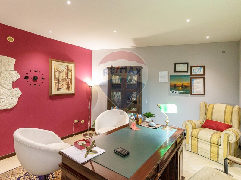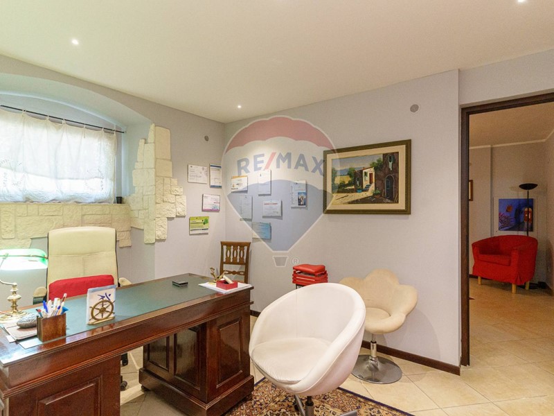 Attualmente ospita uno studio medico, articolato in due ampie sale adibite a reception e sala dattesa, due ambienti destinati a studio privato, un servizio completo, con antibagno, doppia finestra e un ampio ripostiglio, facilmente trasformabile in un secondo servizio o in un pratico cucinino.