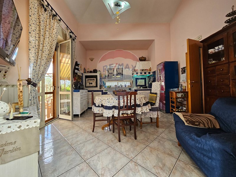 La sala da pranzo è separata dalla cucina abitabile da una grande porta a doppia anta.