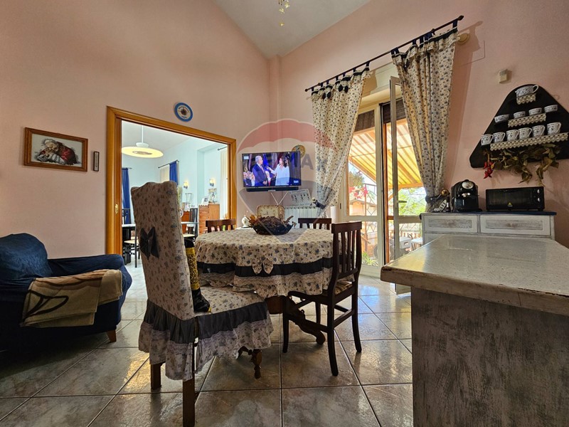 La sala da pranzo è collegata a una veranda che affaccia sul retro della villa.