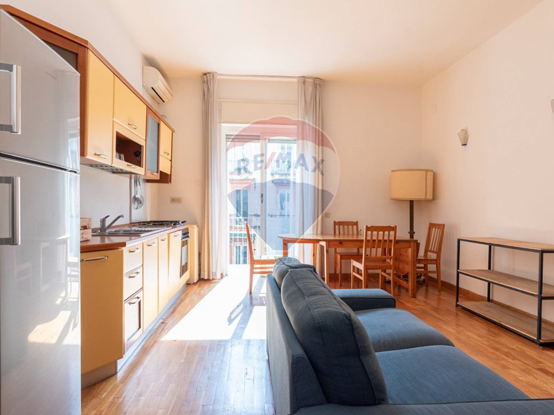 Lappartamento è ubicato al secondo piano di un buon fabbricato moderno in ottime condizioni, fornito di portiere ed ascensore, e si presenta in discrete condizioni generali. E' termoautonomo ed è dotato di 2 balconi (a servizio dei 2 vani principali) e del finestrino che fornisce luce ed aria dirette al bagno.