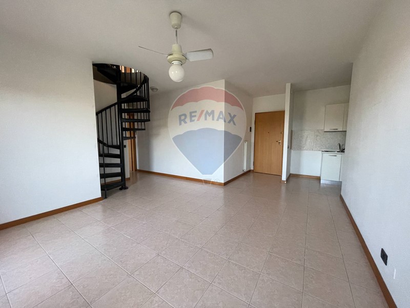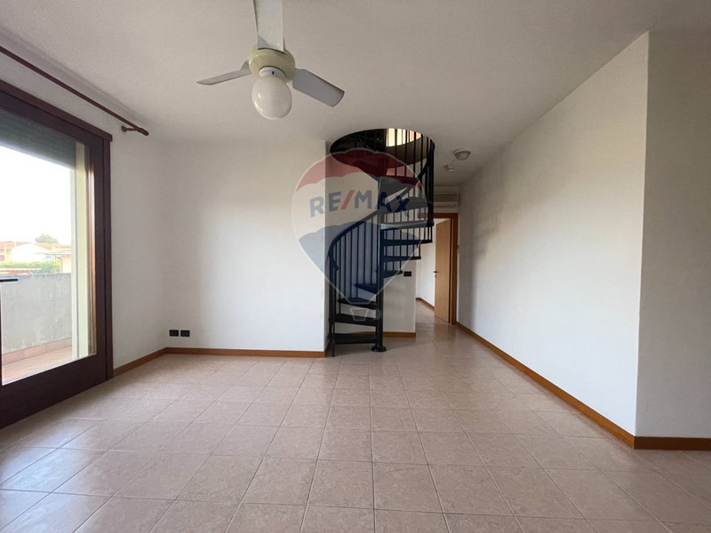 L'immobile, posto al primo piano, si sviluppa su due livelli per una superficie complessiva di 93 m². Al primo livello si trovano un luminoso soggiorno con cucina a vista, una camera da letto matrimoniale e un bagno dotato di vasca. Una scala a chiocciola conduce al piano superiore, dove sono presenti un ampio guardaroba, utilizzabile come camera, un ripostiglio e un secondo bagno con doccia.