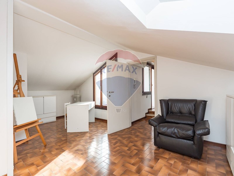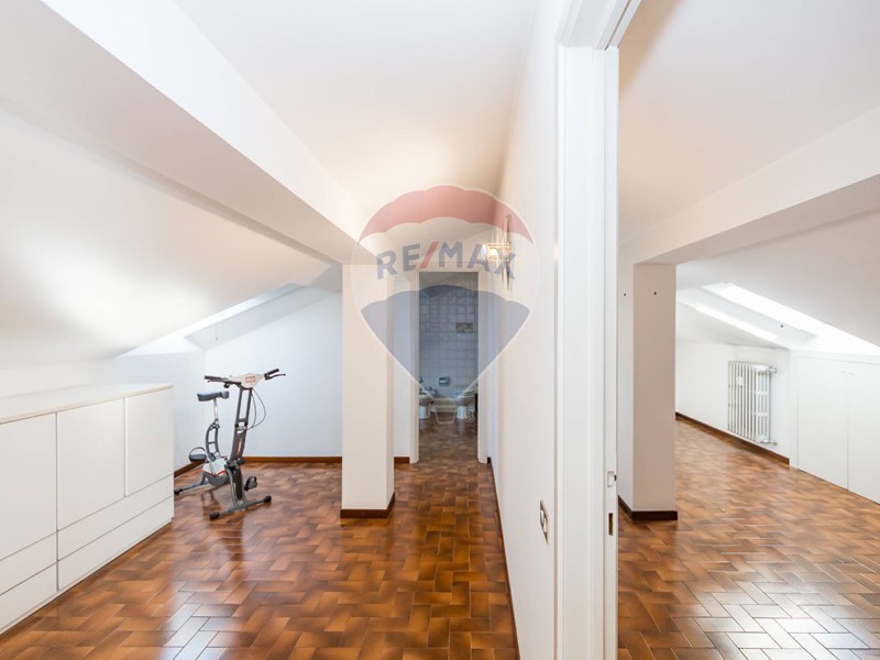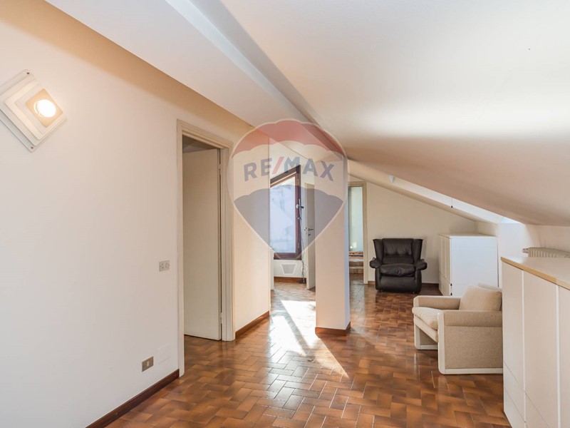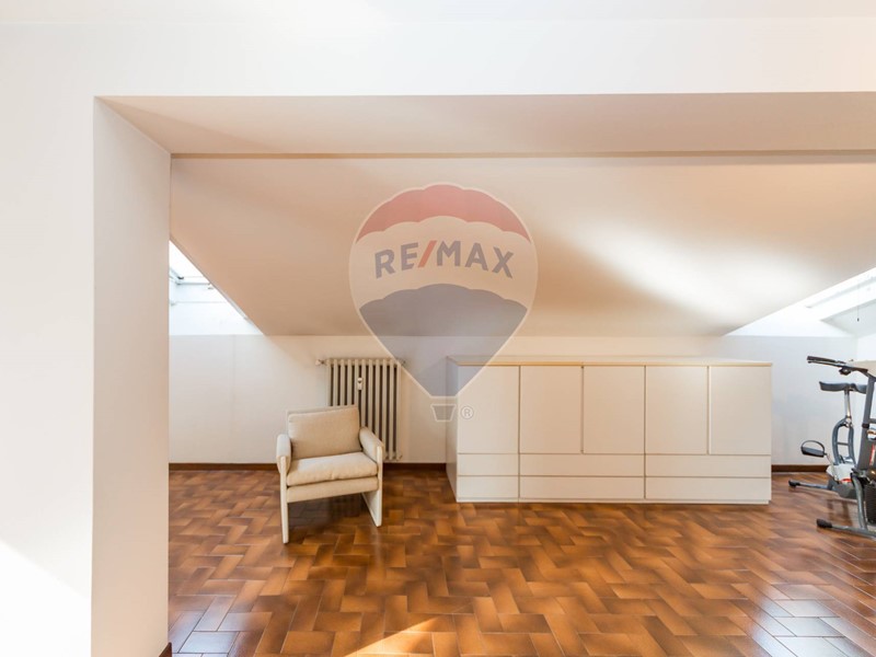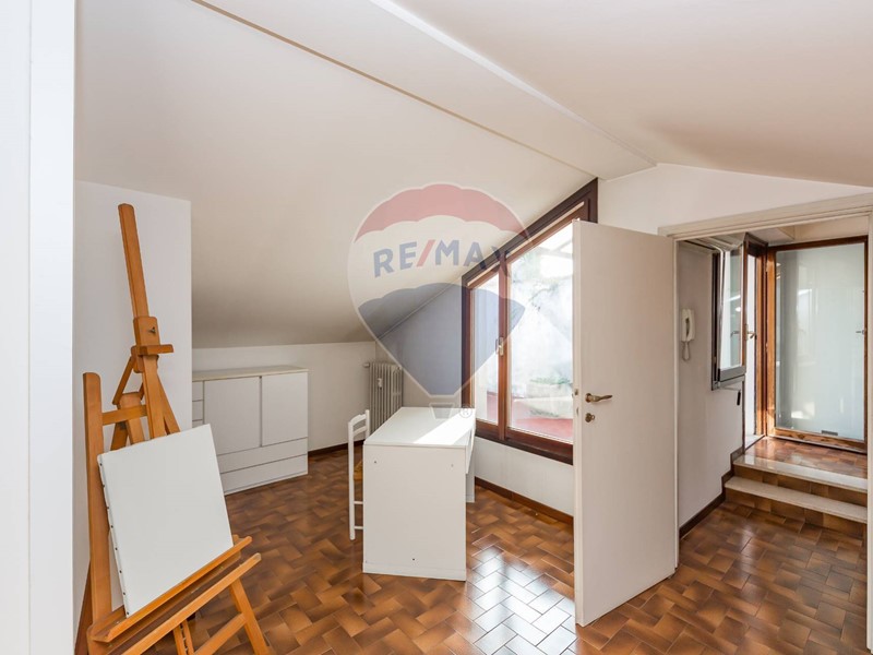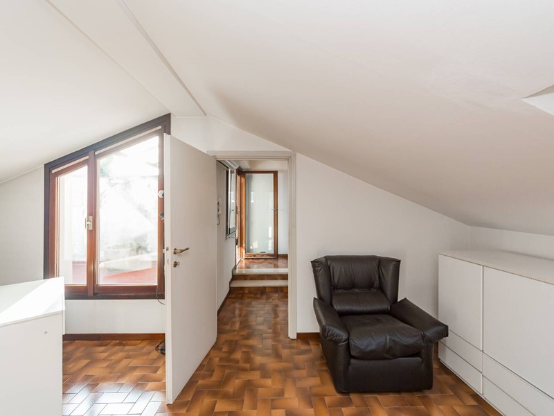 Si tratta di un recupero di sottotetto con punti di altezza massima di 2,60 metri, sanato e condonato nel 1994. Situato alla fine di due rampe di scale oltre l'ultimo piano, di un elegante e signorile condominio residenziale realizzato nel 1976, di soli 4 piani con ascensore.