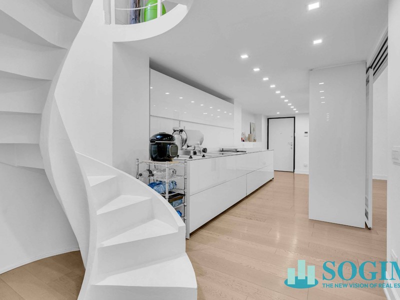 Limmobile si trova al primo piano (piano nobile), servito da ascensore, ed è affacciato sul silenzioso cortile interno. La superficie si sviluppa su due livelli collegati da una scala interna in resina, per una distribuzione funzionale e scenografica degli spazi.