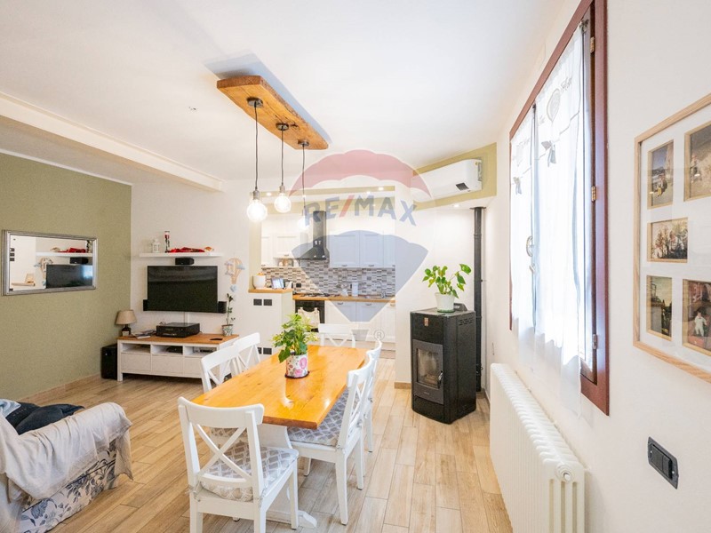 La predisposizione per il riscaldamento con stufa a pellet e la presenza di due split rendono l'ambiente caldo e accogliente in ogni stagione.