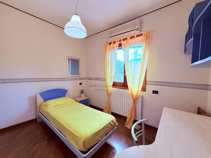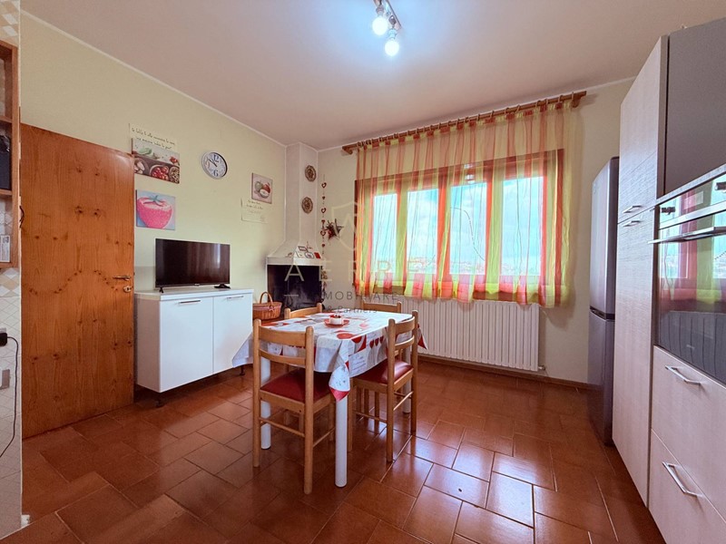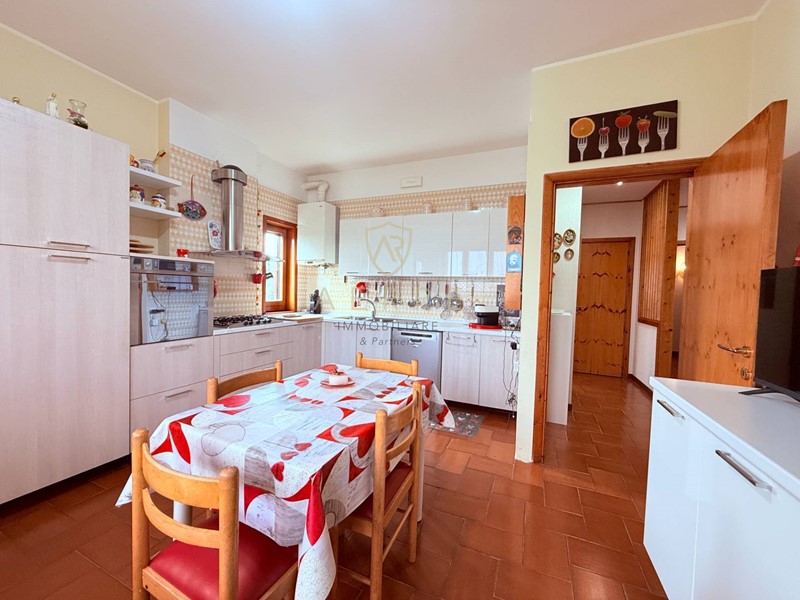 La sua metratura totale di 233 M² offre un'ampia zona living con camino, cucina abitabile con camino, ripostiglio, bagno con vasca, disimpegno che porta alle tre camere da letto e al secondo bagno con doccia, lavanderia, grande stanza pluriuso dalla quale si esce sul grandissimo terrazzo garantendo così spazio e comfort per tutta la famiglia. L'immobile è dotato di un sistema di riscaldamento autonomo a metano, con impianti a radiatori, garantendo un ambiente sempre caldo e confortevole e ci sono anche i condizionatori. Gli infissi e le finestre sono doppi (alluminio esterno e legno con doppio vetro interno), assicurando un buon isolamento termico ed acustico .