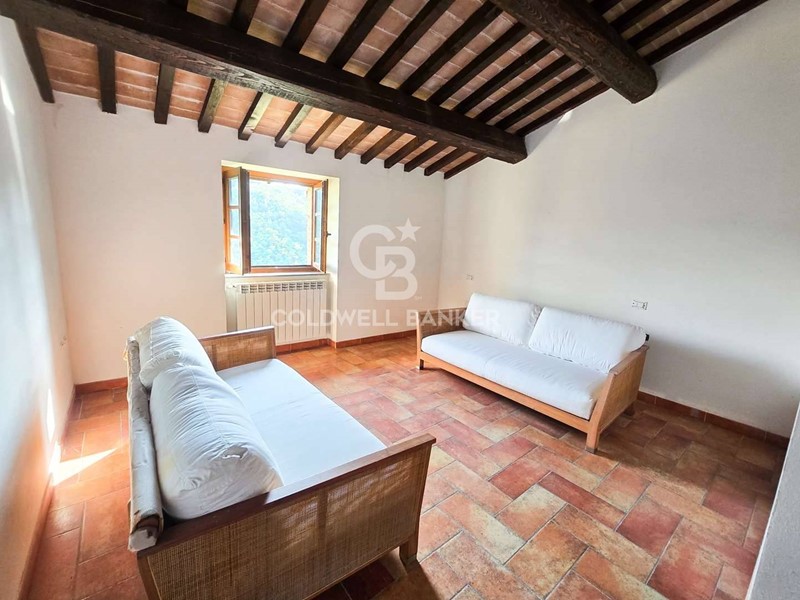 Il casale riflette la pura essenza dello stile umbro, soffitti con travi in legno, pavimenti in cotto antico con dettagli artigianali che conferiscono calore e autenticità.
