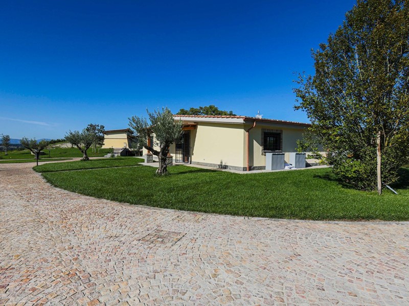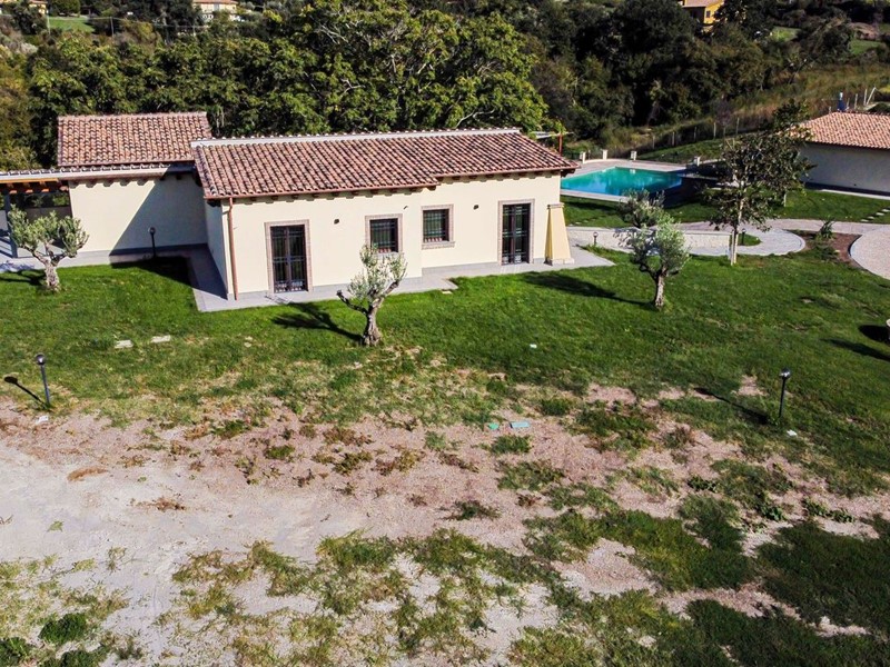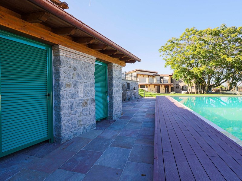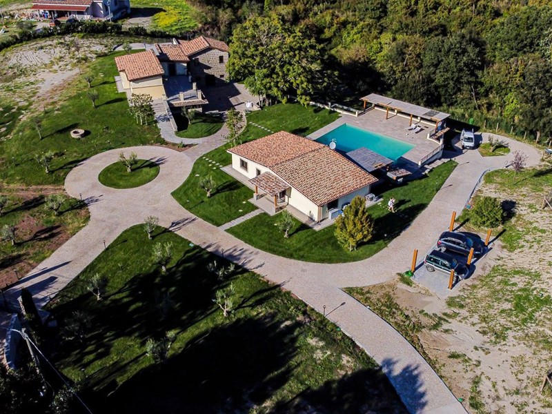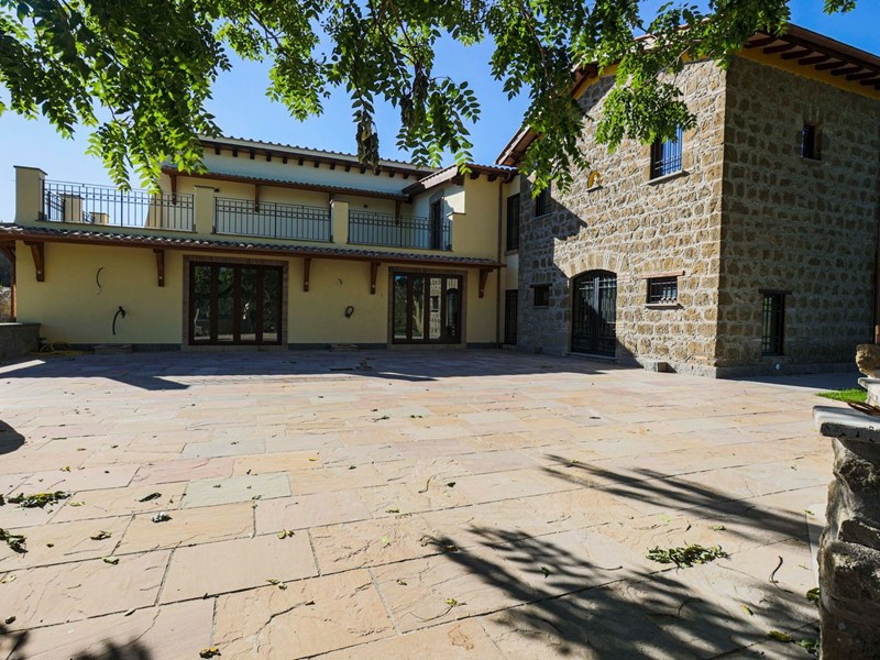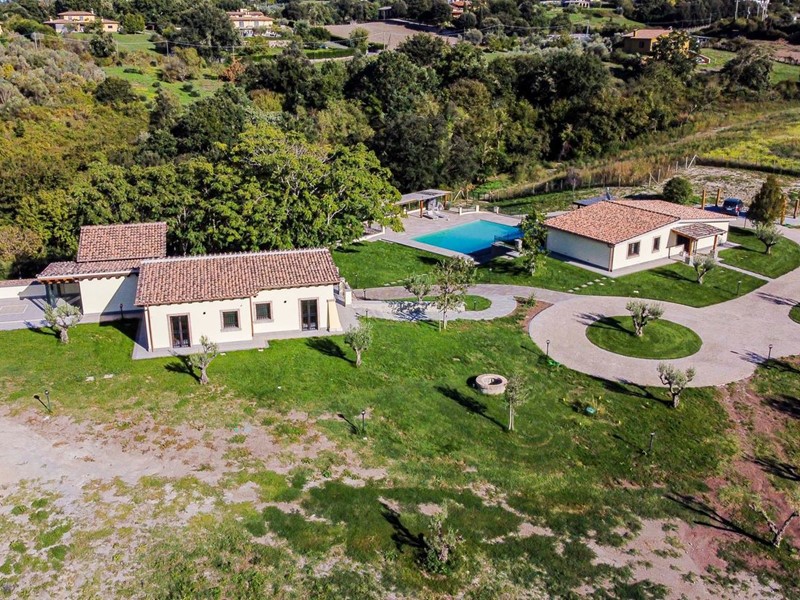 Campagnano di Roma, disponiamo di importante proprietà composta da due ville di nuove di zecca, rifinite di lusso entrambe in classe A. La proprietà si trova nella zona dei Mandriali tra il paese e la cassia bis, in posizione silenziosa e soleggiata con suggestivo affaccio nel bosco. La villa più grande misura 454 mq suddivisi su 2 livelli cosi ripartiti: piano terra con con salone doppio, cucina molto grande ideale anche per attività di ristorazione, 2 camere e 2 bagni. Primo piano con 3 camere, 3 bagni, terrazze e serra solare. La villa più piccola è composta da un ampio salone, 2 camere, 2 bagni al piano più un appartamento indipendente ideale per domestici composto da soggiorno, angolo cottura, 2 camere e bagno. Completa la proprietà un ampio parco di 2,5 ha di cui 1600mq pavimentati intorno ad una stupenda piscina 12x8m.