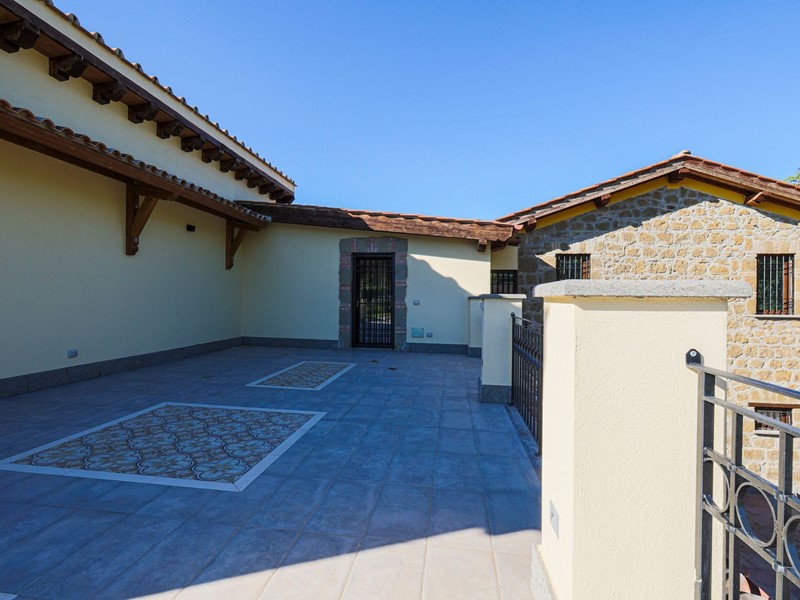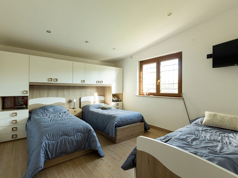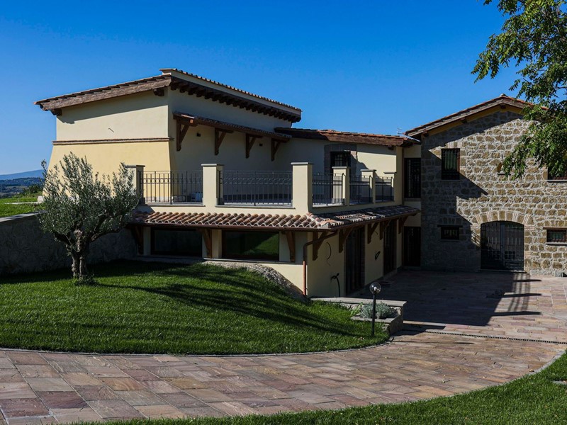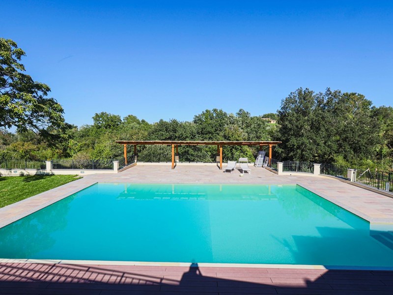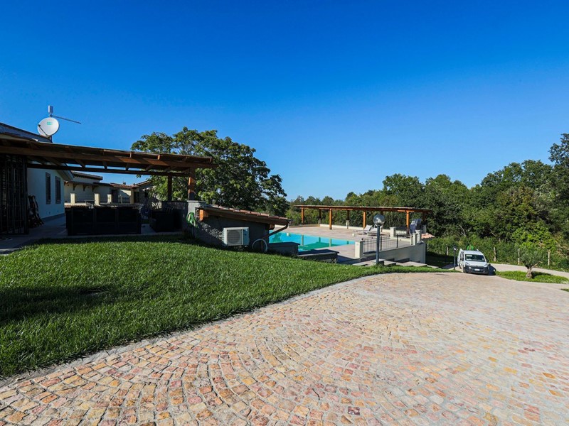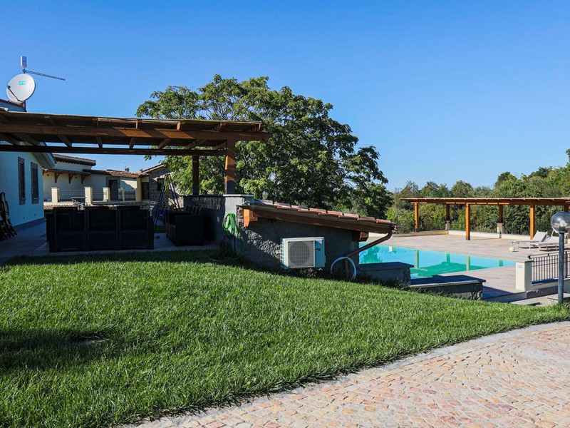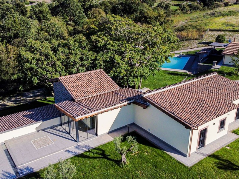 Campagnano di Roma, disponiamo di importante proprietà composta da due ville di nuove di zecca, rifinite di lusso entrambe in classe A. La proprietà si trova nella zona dei Mandriali tra il paese e la cassia bis, in posizione silenziosa e soleggiata con suggestivo affaccio nel bosco. La villa più grande misura 454 mq suddivisi su 2 livelli cosi ripartiti: piano terra con con salone doppio, cucina molto grande ideale anche per attività di ristorazione, 2 camere e 2 bagni. Primo piano con 3 camere, 3 bagni, terrazze e serra solare. La villa più piccola è composta da un ampio salone, 2 camere, 2 bagni al piano più un appartamento indipendente ideale per domestici composto da soggiorno, angolo cottura, 2 camere e bagno. Completa la proprietà un ampio parco di 2,5 ha di cui 1600mq pavimentati intorno ad una stupenda piscina 12x8m.