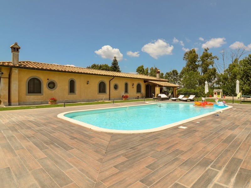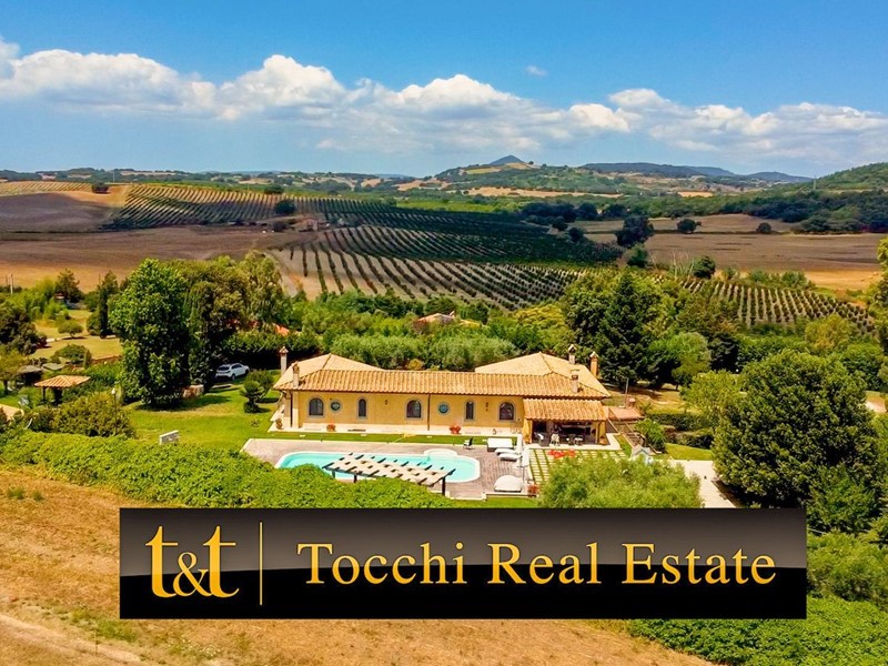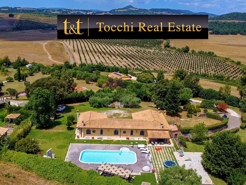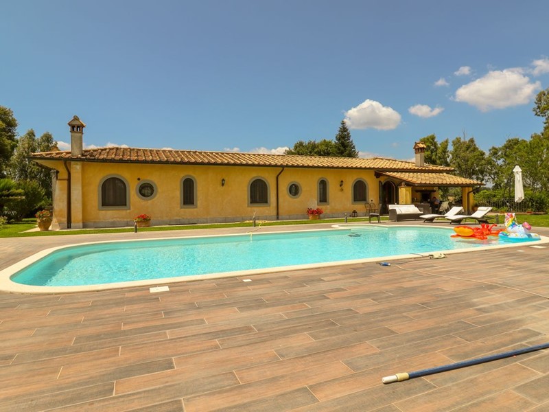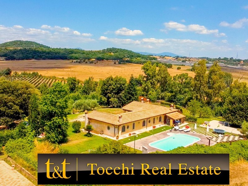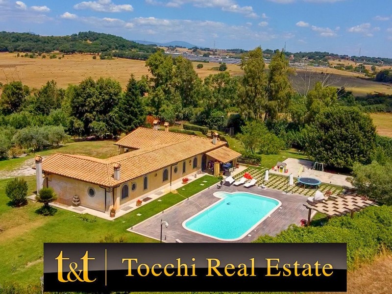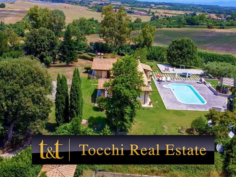 La Tocchi Real Estate è lieta di presentarvi esclusiva villa unifamiliare con piscina recentemente ristrutturata. L'immobile si trova vicino alla Cassi Bis, a pochi chilometri dal lago di Bracciano ed a soli 4 chilometri dal comune di Campagnano di Roma. La villa sviluppa una superficie complessiva di 230 metri quadrati su un unico livello, oltre 230 metri quadrati semiinterrati. È stata tutta completamente ristrutturata nel 2013 con materiali di lusso di altissimo livello e non richiede nessun lavoro di ristrutturazione per essere abitata. Il piano terra è composto da un ampio salone con camino e una cucina in muratura che affaccia sul giardino e sulla piscina attraverso un patio arricchito con travi a vista e barbecue in muratura. Troviamo inoltre due camere con due bagni e una suite matrimoniale con cabina armadio e ampio bagno con vasca idromassaggio. Al piano seminterrato abbiamo una taverna con accesso indipendente dall'esterno che può essere utilizzata anche come secondo appartamento. La zona è munita infatti di cucina in muratura, camino, un bagno e una camera da letto con bagno. A completare il piano seminterrato un box auto in grado di ospitare fino a tre automobili ed un comodo locale lavanderia. La villa è inoltre munita di riscaldamento a pavimento per il risparmio energetico con doppia alimentazione a pellet e a GPL con zanzariere su tutti gli infissi oltre che di impianto d'allarme. Lo stile della casa è raffinato, sobrio ed elegante con materiali di primissima scelta a rifinire ogni ambiente. Esternamente la villa è circondata da uno stupendo giardino di 6.000 metri quadrati arricchito con una piscina 15x6, doccia esterna e un patio in legno. Il giardino è provvisto di impianto di irrigazione ed un pozzo. La posizione di questa villa è veramente unica, dominante, soleggiata e panoramica ma al contempo vicino a tutti i servizi essendo vicina ai comuni di Campagnano, Monterosi e Trevignano. Nonostante la proprietà sia circondata dal verde questa villa offre al contempo sicurezza e privacy facendo parte di un piccolo borghetto agricolo dove non c'è nessuna spesa di condominio e niente in comune, ma dove comunque si rimane uno vicino agli altri senza rimanere troppo isolati.