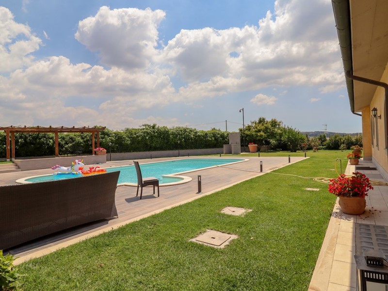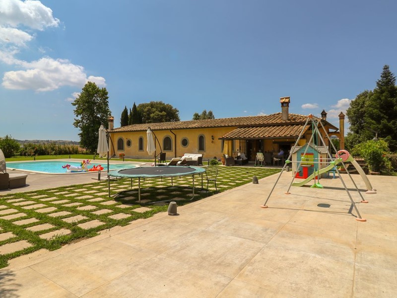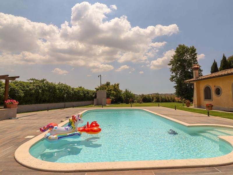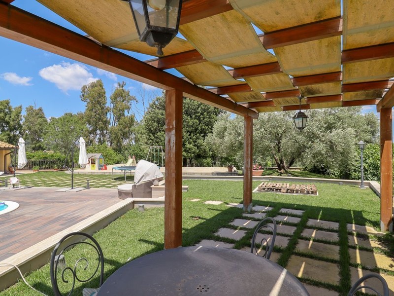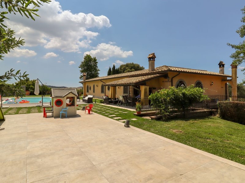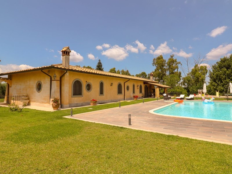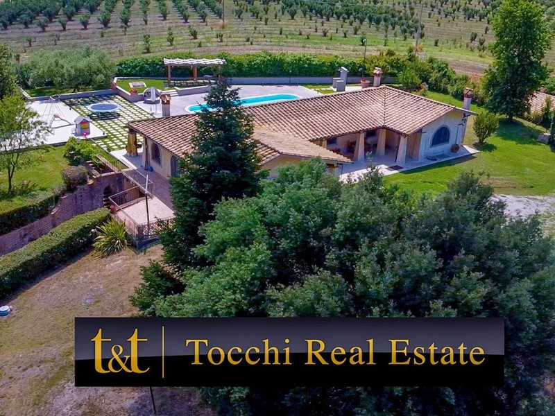 La Tocchi Real Estate è lieta di presentarvi esclusiva villa unifamiliare con piscina recentemente ristrutturata. L'immobile si trova vicino alla Cassi Bis, a pochi chilometri dal lago di Bracciano ed a soli 4 chilometri dal comune di Campagnano di Roma. La villa sviluppa una superficie complessiva di 230 metri quadrati su un unico livello, oltre 230 metri quadrati semiinterrati. È stata tutta completamente ristrutturata nel 2013 con materiali di lusso di altissimo livello e non richiede nessun lavoro di ristrutturazione per essere abitata. Il piano terra è composto da un ampio salone con camino e una cucina in muratura che affaccia sul giardino e sulla piscina attraverso un patio arricchito con travi a vista e barbecue in muratura. Troviamo inoltre due camere con due bagni e una suite matrimoniale con cabina armadio e ampio bagno con vasca idromassaggio. Al piano seminterrato abbiamo una taverna con accesso indipendente dall'esterno che può essere utilizzata anche come secondo appartamento. La zona è munita infatti di cucina in muratura, camino, un bagno e una camera da letto con bagno. A completare il piano seminterrato un box auto in grado di ospitare fino a tre automobili ed un comodo locale lavanderia. La villa è inoltre munita di riscaldamento a pavimento per il risparmio energetico con doppia alimentazione a pellet e a GPL con zanzariere su tutti gli infissi oltre che di impianto d'allarme. Lo stile della casa è raffinato, sobrio ed elegante con materiali di primissima scelta a rifinire ogni ambiente. Esternamente la villa è circondata da uno stupendo giardino di 6.000 metri quadrati arricchito con una piscina 15x6, doccia esterna e un patio in legno. Il giardino è provvisto di impianto di irrigazione ed un pozzo. La posizione di questa villa è veramente unica, dominante, soleggiata e panoramica ma al contempo vicino a tutti i servizi essendo vicina ai comuni di Campagnano, Monterosi e Trevignano. Nonostante la proprietà sia circondata dal verde questa villa offre al contempo sicurezza e privacy facendo parte di un piccolo borghetto agricolo dove non c'è nessuna spesa di condominio e niente in comune, ma dove comunque si rimane uno vicino agli altri senza rimanere troppo isolati.