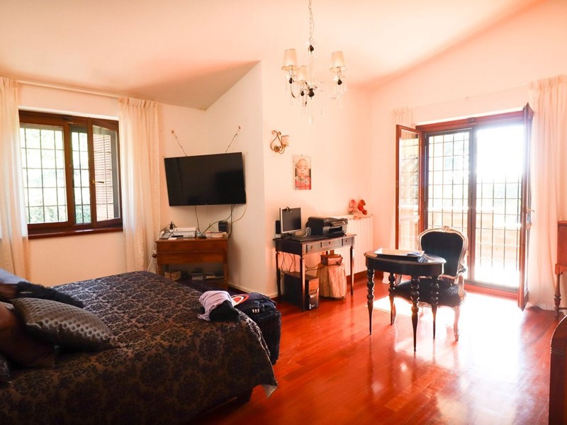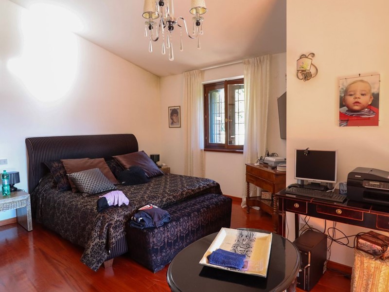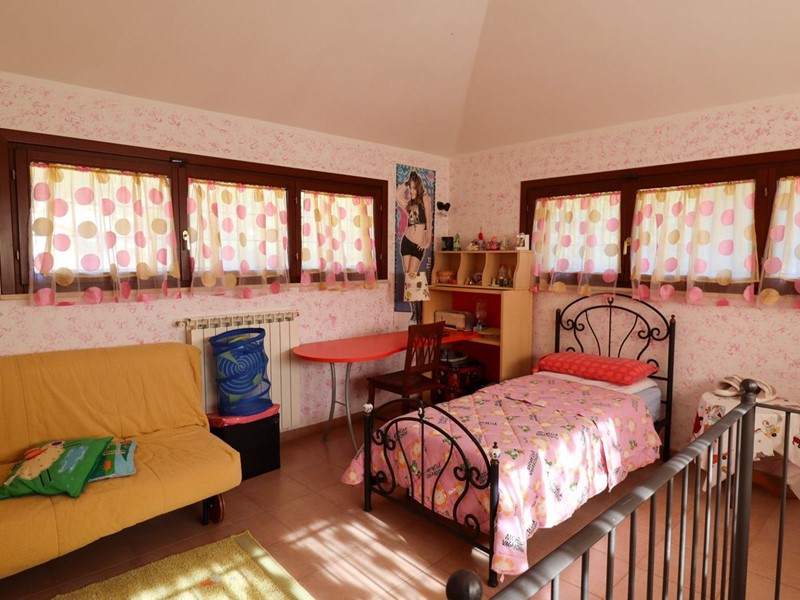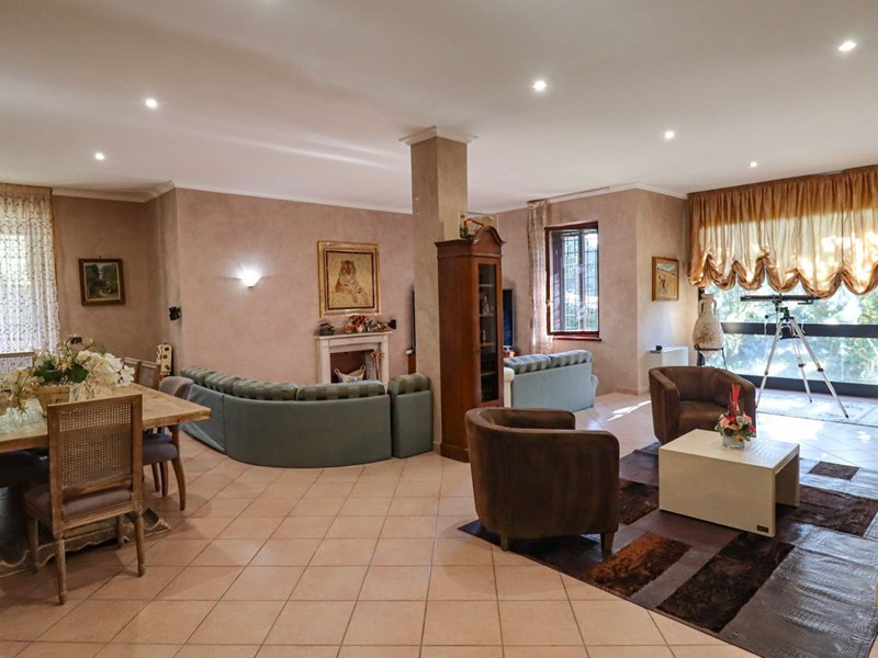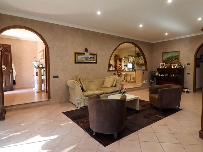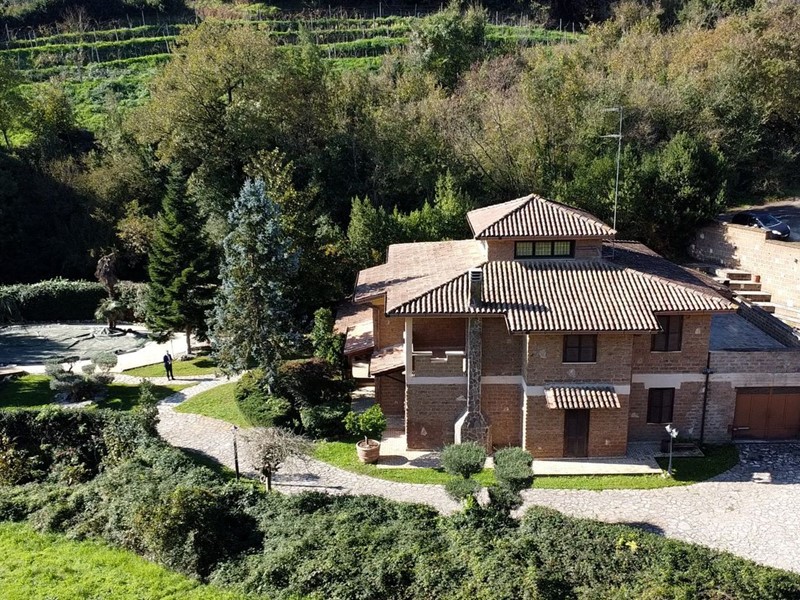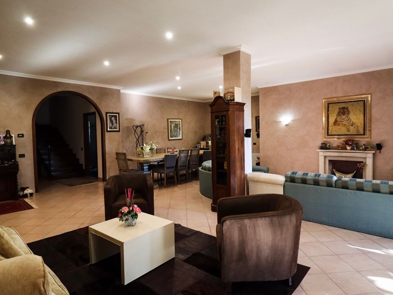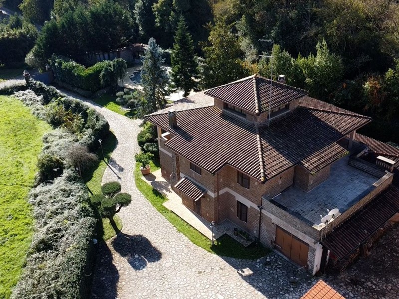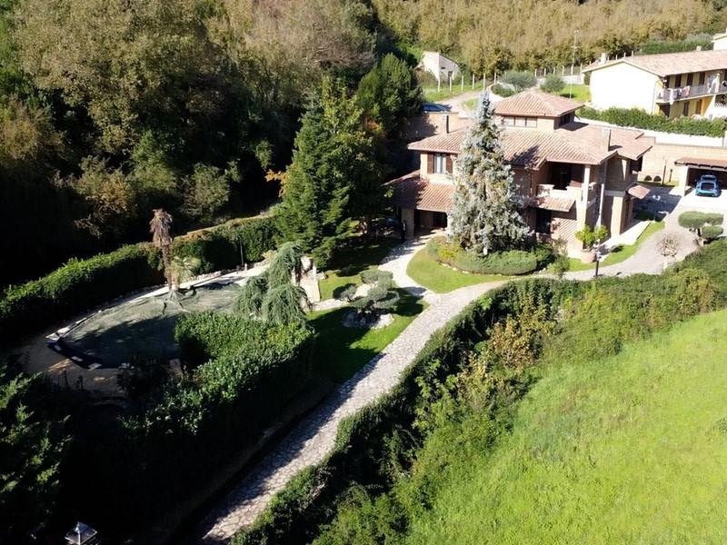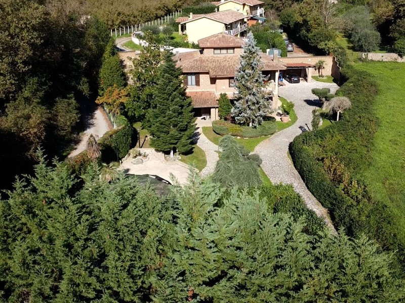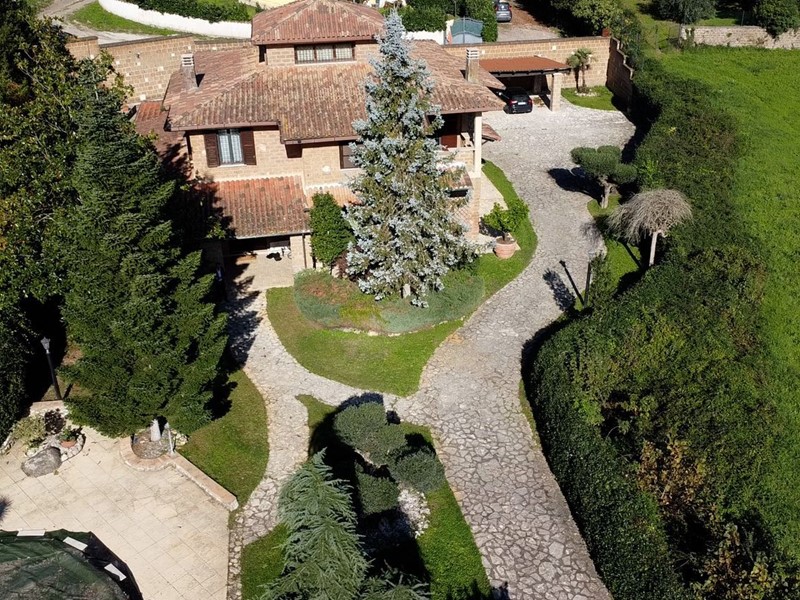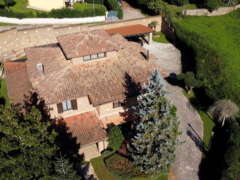 La villa si trova a Fabrica di Roma, precisamente in Via Fontanasecca, in posizione riservata ma semicentrale, ed offre la possibilità di raggiungere il centro storico del paese anche a piedi. La proprietà è stata costruita da zero nel 2012, con una solida struttura in cemento armato a foratini, ed è rifinita esternamente con mattoni di tufo a faccia vista. La villa è ideale per chi è la ricerca di ampi sparsi, si sviluppa, infatti, su due piani fuori terra di 210 m² ciascuno più una torretta panoramica. Entrando dall'ingresso principale, veniamo accolti da una zona giorno di dimensioni notevoli, con un salone di 120 m² con camino, sala pranzo con cucina a vista in muratura e giardino di inverno, chiuso con tende e riscaldato, nel quale è presente un forno legna in muratura. A completare il piano terra, un bagno, una lavanderia ed una camera per il personale di servizio. Al primo piano troviamo tre grandi camere matrimoniali, tutte i con pavimentazioni in parquet, due bagni di cui uno con vasca idromassaggio. Esternamente troviamo un curatissimo giardino di 1500 m² in parte pavimentato, una piscina di acqua salata con possibilità di essere riscaldata e posti auto-coperti. La villa è finita in ogni suo ambiente con materiali di altissimo livello, porte in legno, armadi a muro, pavimentazione in parche e gres porcellanato.