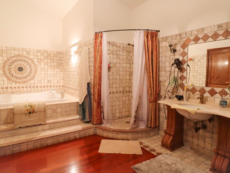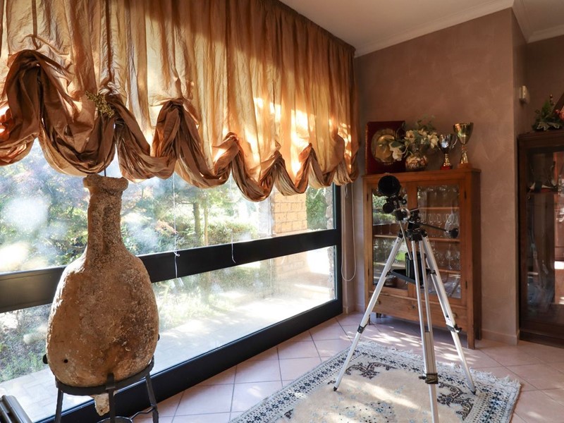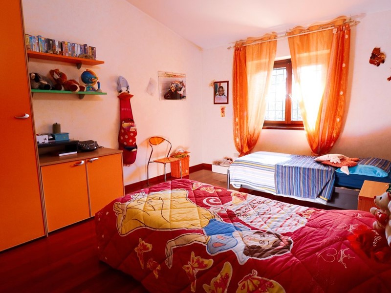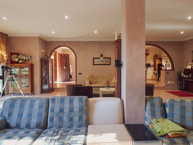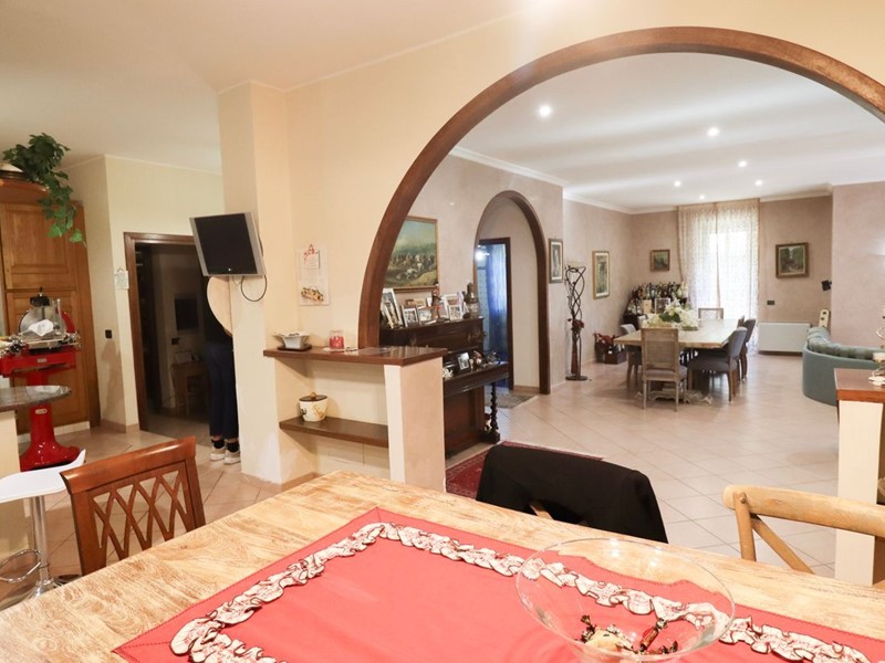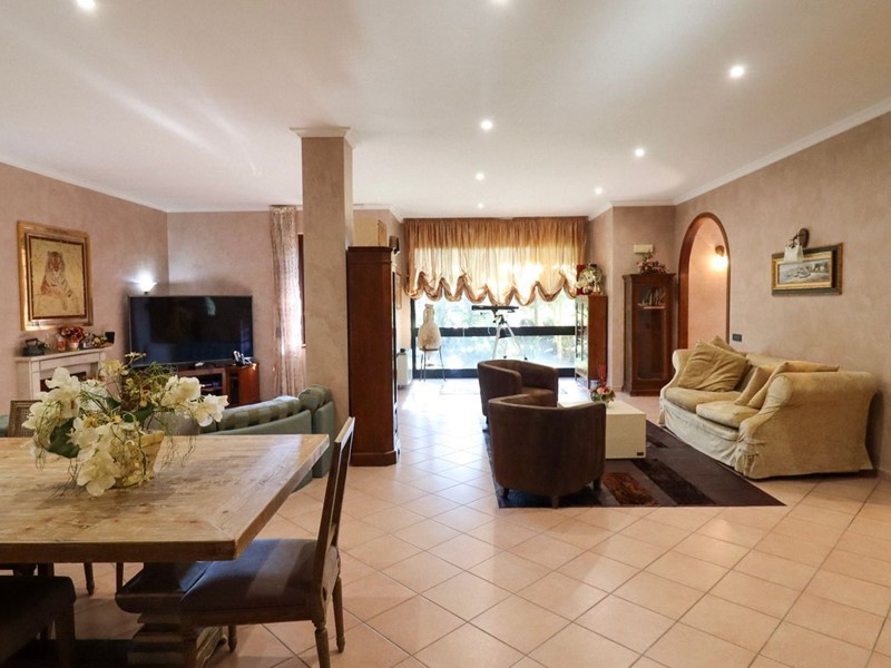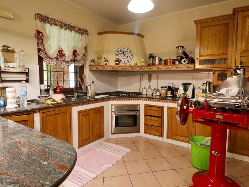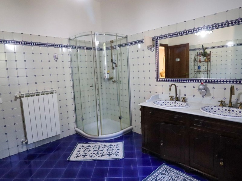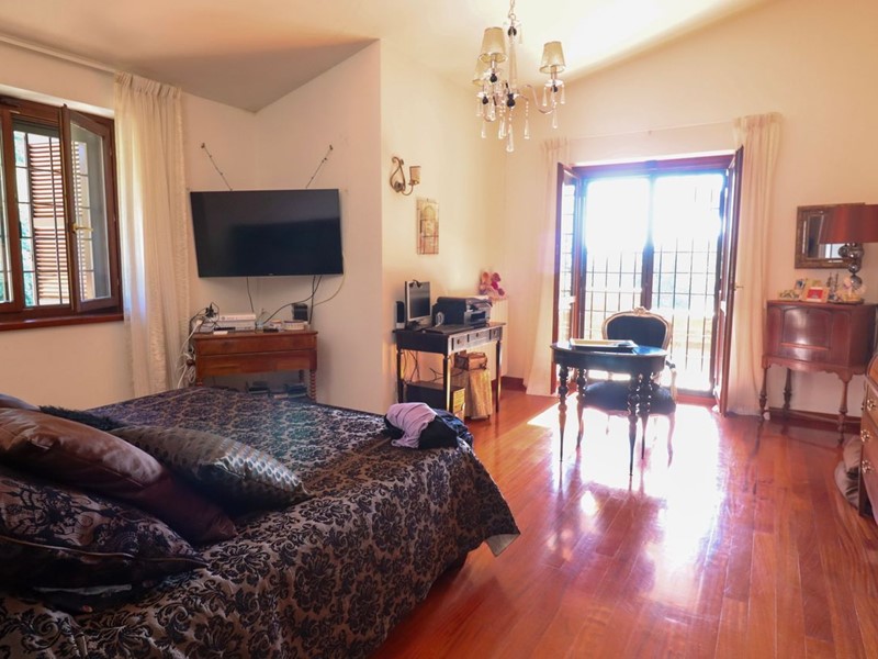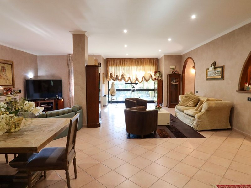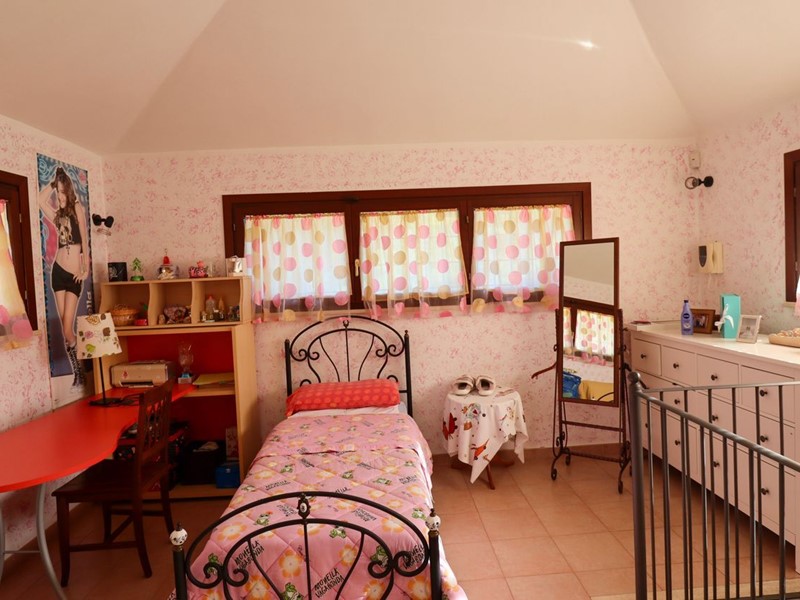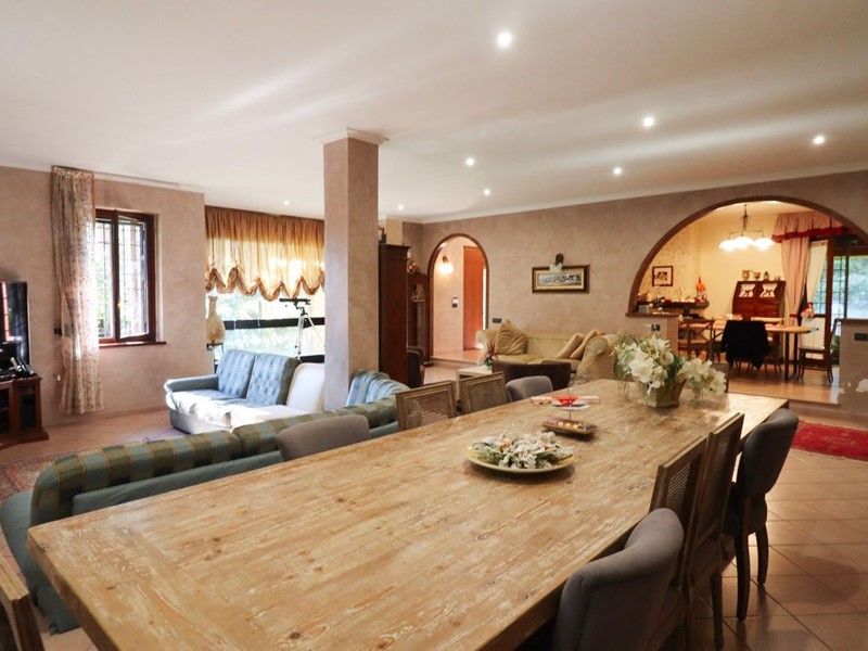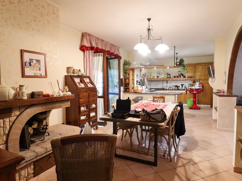 La villa si trova a Fabrica di Roma, precisamente in Via Fontanasecca, in posizione riservata ma semicentrale, ed offre la possibilità di raggiungere il centro storico del paese anche a piedi. La proprietà è stata costruita da zero nel 2012, con una solida struttura in cemento armato a foratini, ed è rifinita esternamente con mattoni di tufo a faccia vista. La villa è ideale per chi è la ricerca di ampi sparsi, si sviluppa, infatti, su due piani fuori terra di 210 m² ciascuno più una torretta panoramica. Entrando dall'ingresso principale, veniamo accolti da una zona giorno di dimensioni notevoli, con un salone di 120 m² con camino, sala pranzo con cucina a vista in muratura e giardino di inverno, chiuso con tende e riscaldato, nel quale è presente un forno legna in muratura. A completare il piano terra, un bagno, una lavanderia ed una camera per il personale di servizio. Al primo piano troviamo tre grandi camere matrimoniali, tutte i con pavimentazioni in parquet, due bagni di cui uno con vasca idromassaggio. Esternamente troviamo un curatissimo giardino di 1500 m² in parte pavimentato, una piscina di acqua salata con possibilità di essere riscaldata e posti auto-coperti. La villa è finita in ogni suo ambiente con materiali di altissimo livello, porte in legno, armadi a muro, pavimentazione in parche e gres porcellanato.
