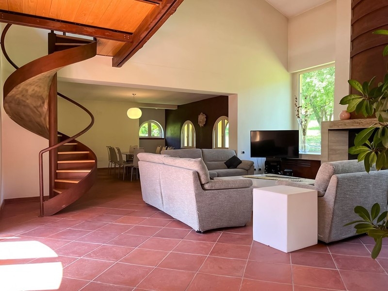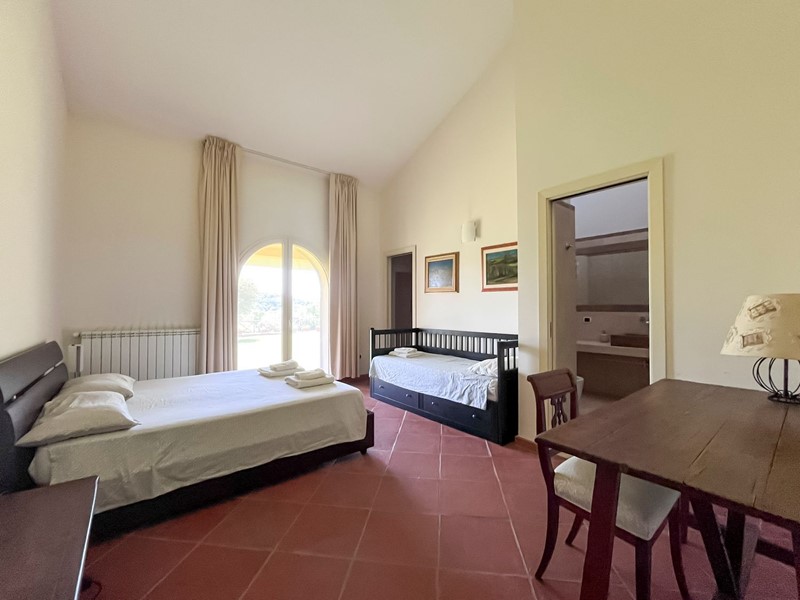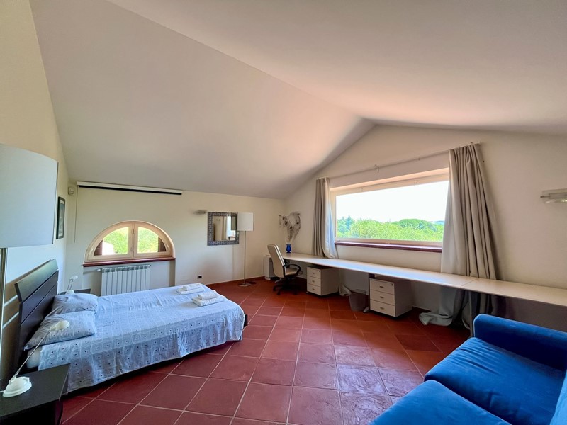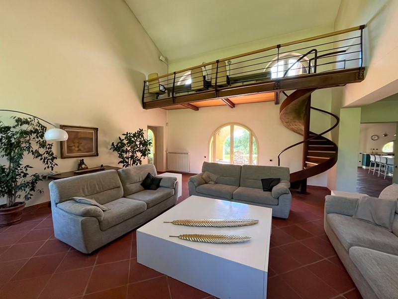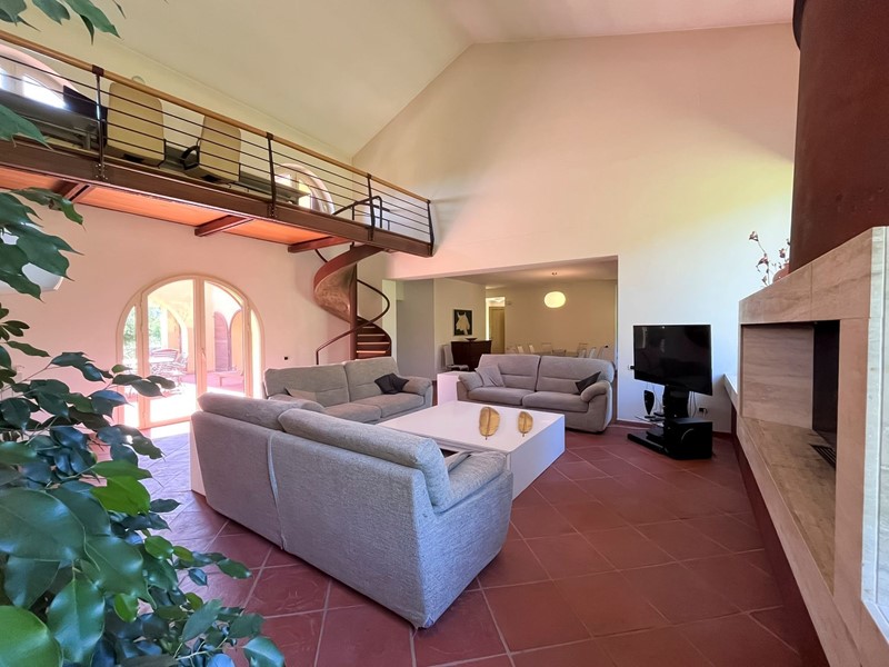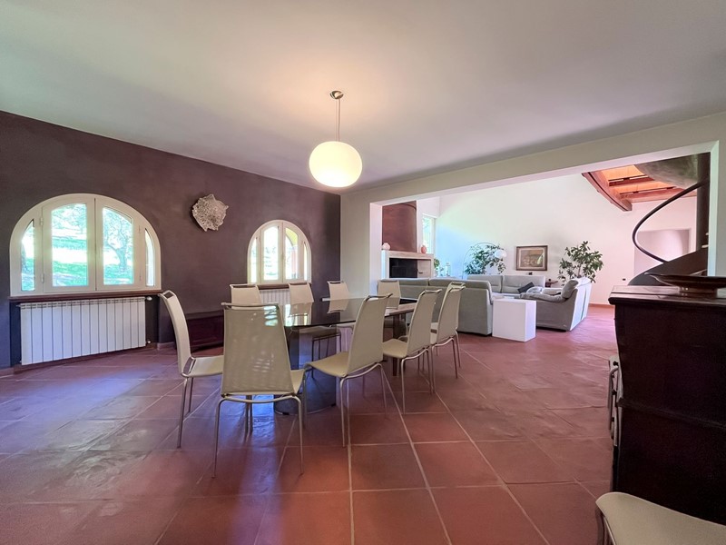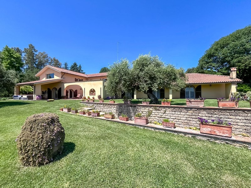 Nella suggestiva cornice del parco del Sorbo, abbiamo il piacere di proporvi "villa Profumo", una fantastica villa su ampio terreno con piante ornamentali, frutteto, oliveto e piscina. La villa, disposta quasi unicamente su unico livello, è stata progettata secondo il concetto di spazio, luce e privacy. Gli ampi spazi e i soffitti alti fino a 5 metri, danno volume e prestigio agli ambienti. Internamente ampia zona giorno con ingresso, salone con camino monumentale e zona soppalco con ufficio, sala da pranzo, grandissima cucina con porta finestra sulla veranda, un bagno di servizio, sei camere da letto di cui tre con bagno en suite e cabina armadio, ed un altro bagno a servire le atre due camere. Le tre principali camere da letto hanno la propria finestra che apre sul giardino. Ogni finestra sembra un quadro, con affaccio sulla natura e la campagna circostante. Al piano seminterrato ampia sala hobby, ulteriore camera da letto per gli ospiti, zona lavanderia, ampio garage, appartamento di servizio per il custode, cantina e locale per gli impianti. Esternamente ampio terreno, curato a pratino inglese, numerose piante ornamentali, alberi da frutto, piante di ulivo e zona piscina. Soluzione adatta per chi cerca privacy e tranquillità, ma alla stesso tempo vuole mantenere la vicinanza alla città che dista soli 20 minuti dalla casa. Attualmente la proprietà è sfruttata anche come attività ricettiva di livello.