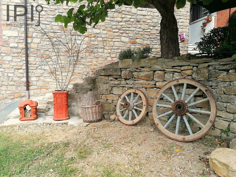 Il complesso si raggiunge con strada comunale asfaltata che arriva al cancello dingresso da dove si accede ad un grande cortile sul quale sorgono tutti i fabbricati, tutti originali costruiti in pietra locale. La casa principale abitativa si articola su due piani con a piano terra una parte a servizi ed una parte abitativa. Abbiamo, con accesso da porticato con archi, una lavanderia con caldaia a g.p.l., una grande cantina con pavimentazione in vecchio cotto e soffitto a voltini in antichi mattoni pieni. Da questo locale si accede ad una cantina interrata adatta alla conservazione ottimale dei vini di pregio, poi un bagno in fase di ristrutturazione, una cucina ed un grande salone con altro accesso dallesterno. Da questa parte allesterno un bel forno antico perfettamente funzionante confinante con tutta la parte a giardino.