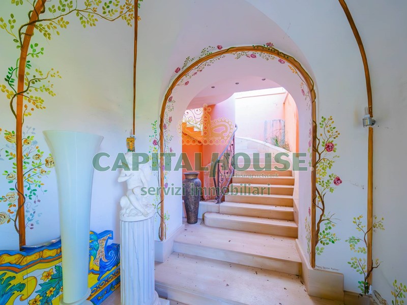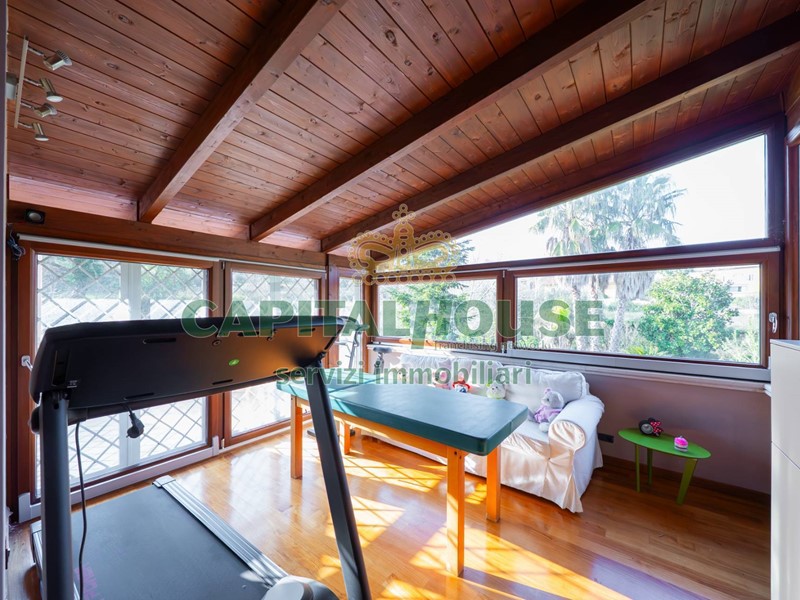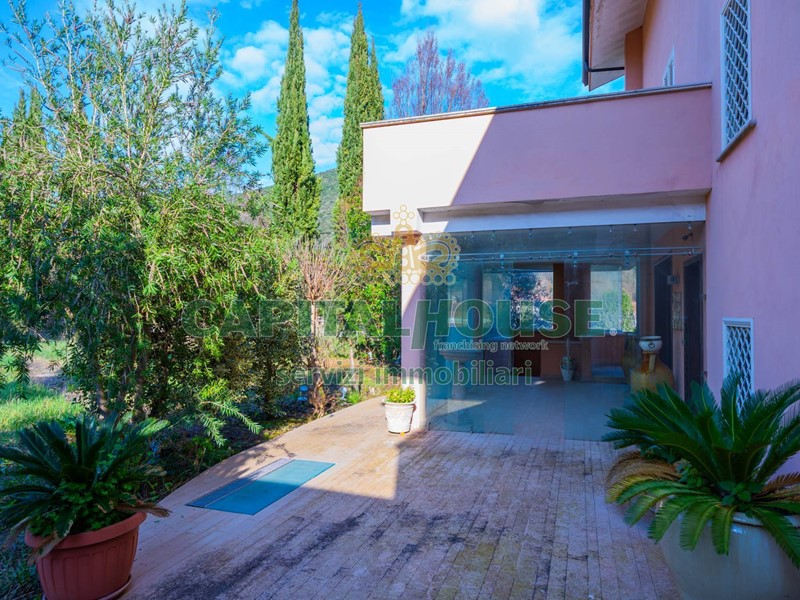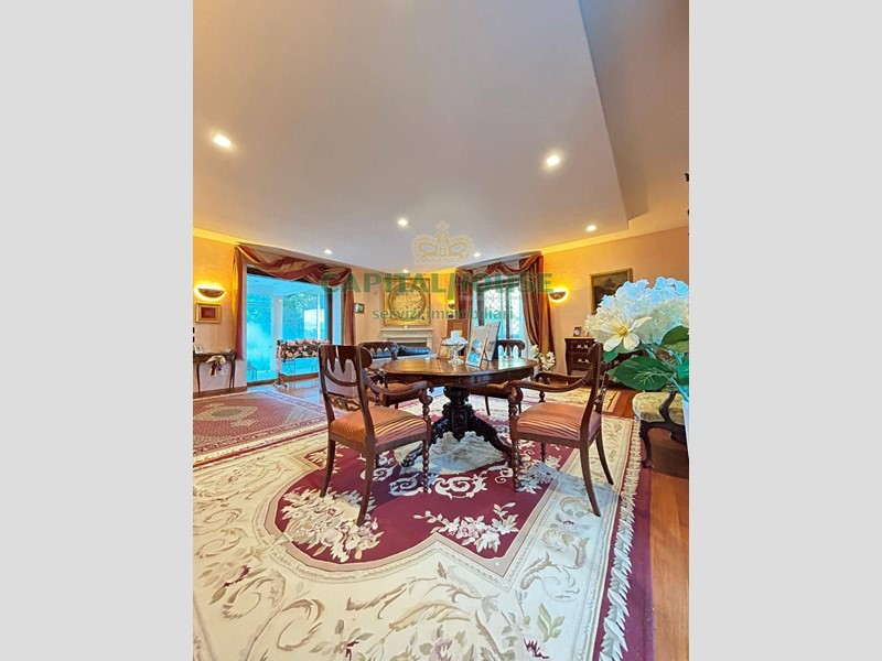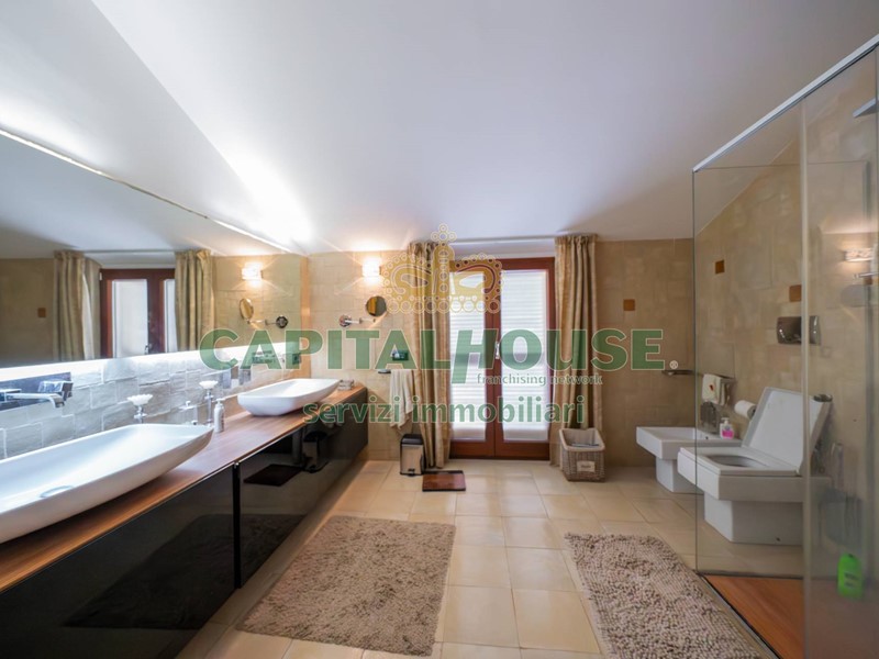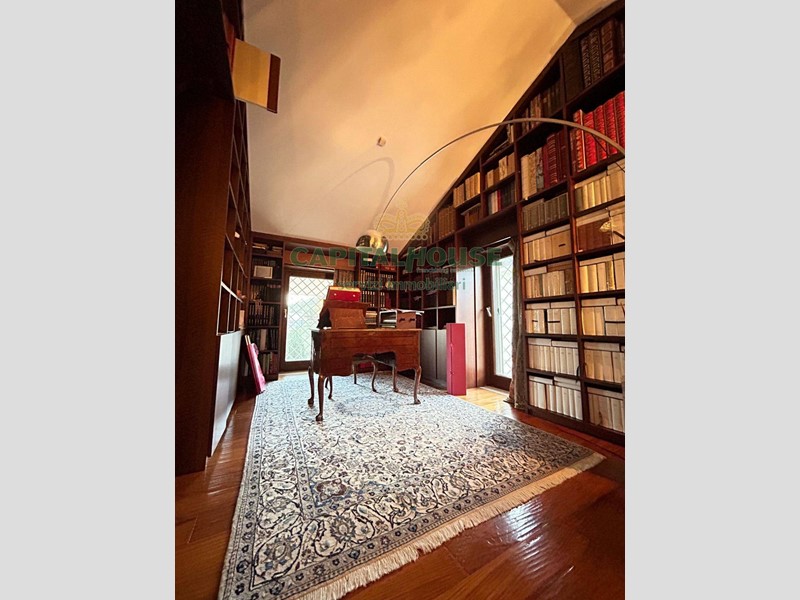E' composta da 9 vani di cui 6 luminose camere da letto, un ampio salone con camino, una comoda cabina armadio, una zona adibita a palestra, una bellissima dépendance con camino e forno a legna con accesso diretto al giardino dove passare momenti piacevoli in famiglia o di relax puro, 2 cucine, 5 WC ognuno con delle caratteristiche diverse e una bellissima libreria.