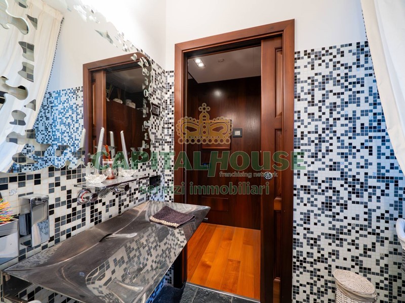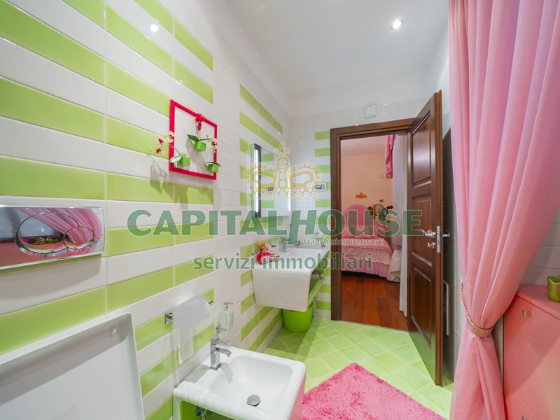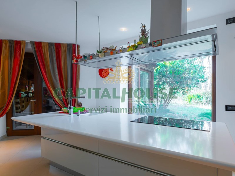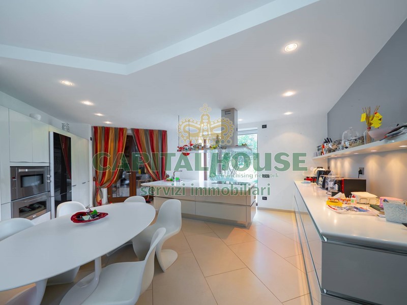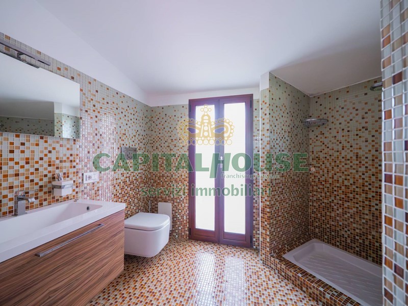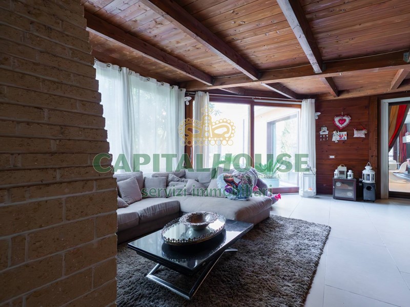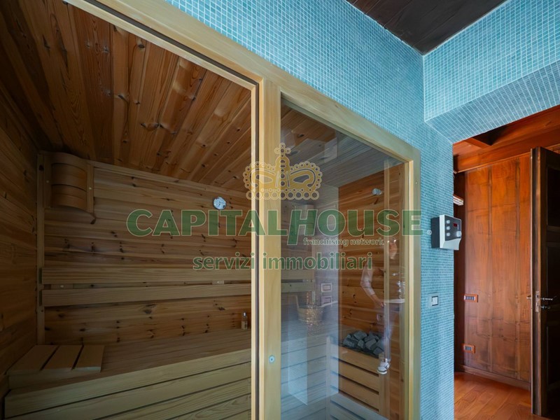 E' composta da 9 vani di cui 6 luminose camere da letto, un ampio salone con camino, una comoda cabina armadio, una zona adibita a palestra, una bellissima dépendance con camino e forno a legna con accesso diretto al giardino dove passare momenti piacevoli in famiglia o di relax puro, 2 cucine, 5 WC ognuno con delle caratteristiche diverse e una bellissima libreria.