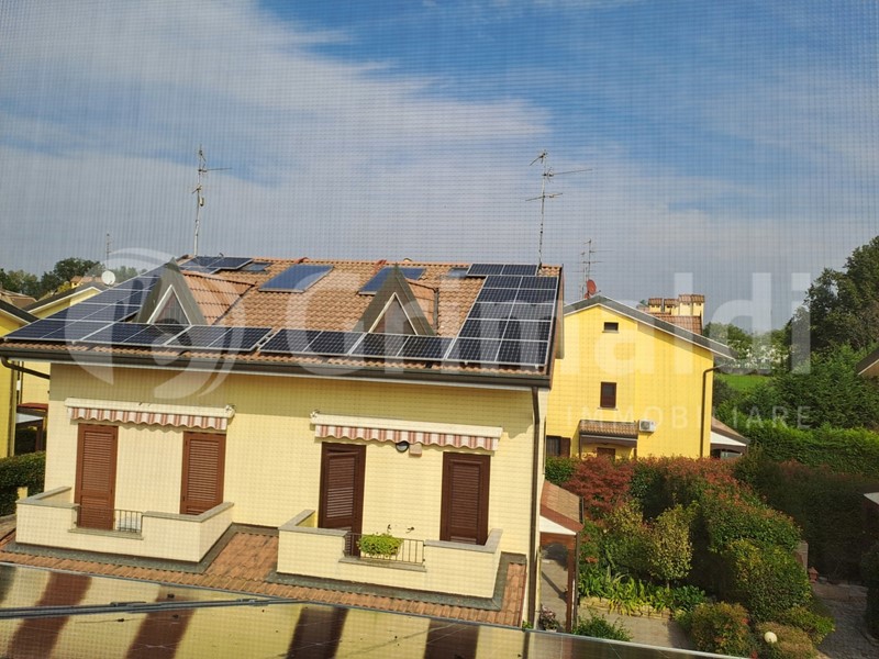 Rozzano (MI). Elegante villa di testa porzione di trifamiliare costruita nell'anno 2004, disposta su 4 livelli e in ottime condizioni interne, di recente ottimamente ristrutturata all'esterno con Superbonus 110%, cappotto termico di 14 cm circa, impianto fotovoltaico, finestre in triplo vetro PVC con n. 3 chiusure, caldaia a condensazione, pompa di calore, colonnina per la ricarica dei veicoli elettrici e tutti gli accorgimenti rivolti al risparmio energetico che l'hanno portata in classe A2. Luminosità e comfort sono garantiti ovunque grazie alla tripla esposizione. La proprietà è composta al piano terra da ingresso, soggiorno doppio con uscita sul portico in giardino, cucina abitabile con seconda uscita in giardino, bagno con finestra; al piano primo da due camere matrimoniali e un secondo bagno anch'esso con finestra; al piano terzo da un ampio locale sottotetto open space, che seppur non abitabile consente la creazione di altri due ambienti e un altro bagno, in quanto finemente rifinito e dotato di due lucernari che insieme agli abbaini conferiscono un'ottima luminosità e versatilità all'ambiente.
