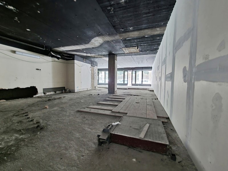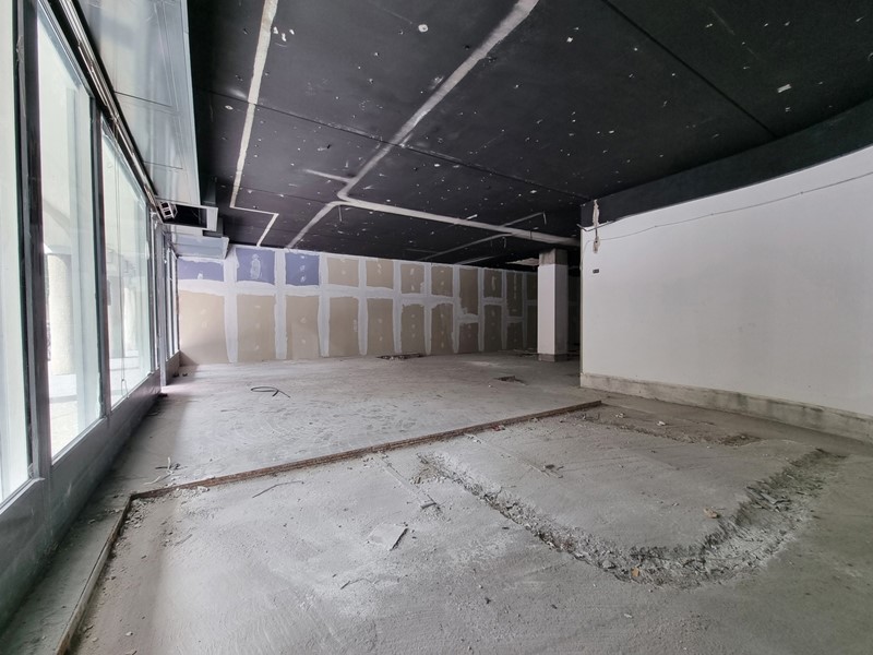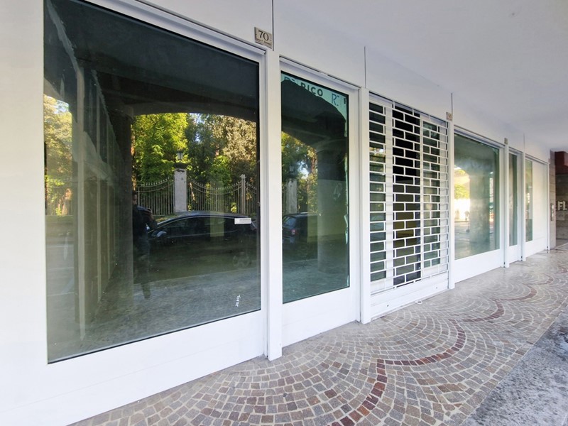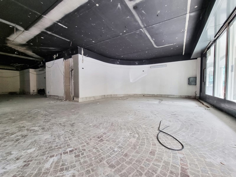 Al piano terra il locale di 220 mq offre quattro ampie e visibili vetrine fronte strada, per 12 metri lineari oltre ad un ulteriore punto luce retrostante.