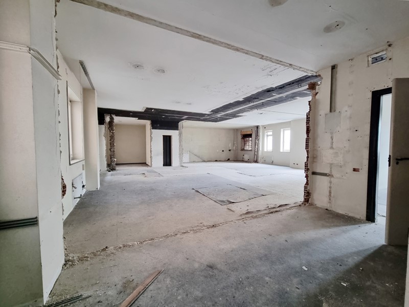 Il locale è collegato al primo piano tramite un vano ascensore ed è ripristinabile il vano scala precedentemente presente entrambi interni alla struttura e quindi indipendenti. Il primo piano si sviluppa su una metratura di 280 mq circa interni, gode di tripla esposizione interno fabbricato e come per il sotto risulta da ristrutturare, la sua conformazione con pochissimi pilastri permette di adattarlo alle proprie esigenze.