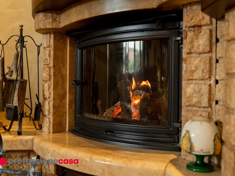 L'ingresso si apre su un disimpegno che conduce alla zona giorno, composta da una cucina abitabile con uscita diretta sul giardino, perfetta per pranzi e cene all'aperto, e da un ampio soggiorno dotato di un bellissimo camino, un elemento che rende l'ambiente ancora più accogliente. Al piano terra è presente anche un bagno, comodo per gli ospiti.