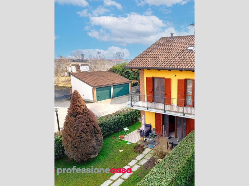 Situata in una zona tranquilla e riservata immersa nel verde, ma allo stesso tempo comoda ai servizi e all'imbocco autostradale, la Professionecasa è lieta di proporre in vendita questa splendida villa indipendente sui tre lati, di costruzione recente, risalente al 2012, realizzata con materiali di pregio che garantiscono comfort e raffinatezza. L'immobile offre una distribuzione ottimale degli spazi con ben 220 mq di superficie e un giardino privato di 500 mq, ideale per godere di momenti di relax all'aperto. Un ampio garage doppio fuori terra con basculante elettrico aggiunge ulteriore praticità alla proprietà.