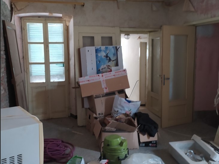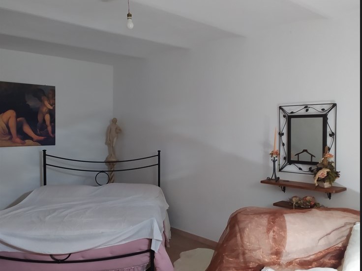 Immobile su tre piani, sup. tot ca mq. 306,40 composto al p.T. da locale uso sgombero e cantina, scala interna, piccolo porticato e ripostiglio posti sotto scala, raggiungibili dalla modesta porzione di terreno parte del fabbricato; al p. primo da cucina, soggiorno, servizio igienico, 2 camere, balcone con prosecuzione del vano scala (parte abitata); al p. secondo da 3 camere, locale di sgombero, disimpegno, servizio igienico e balconi (porzione in cattivo stato di conservazione). Libero.