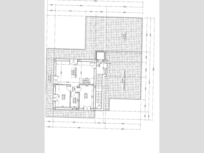 L'immobile in questione è un attico con soggiorno con ak , due camere e bagno, terrazzo perimetrale di 115 mq, Posto auto.