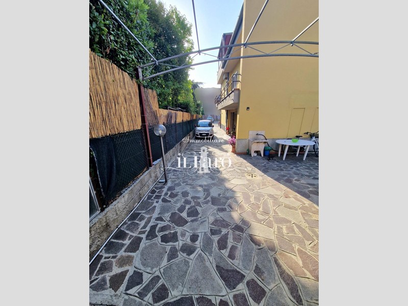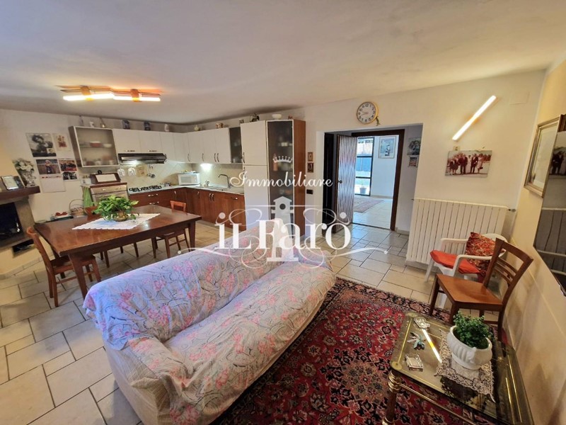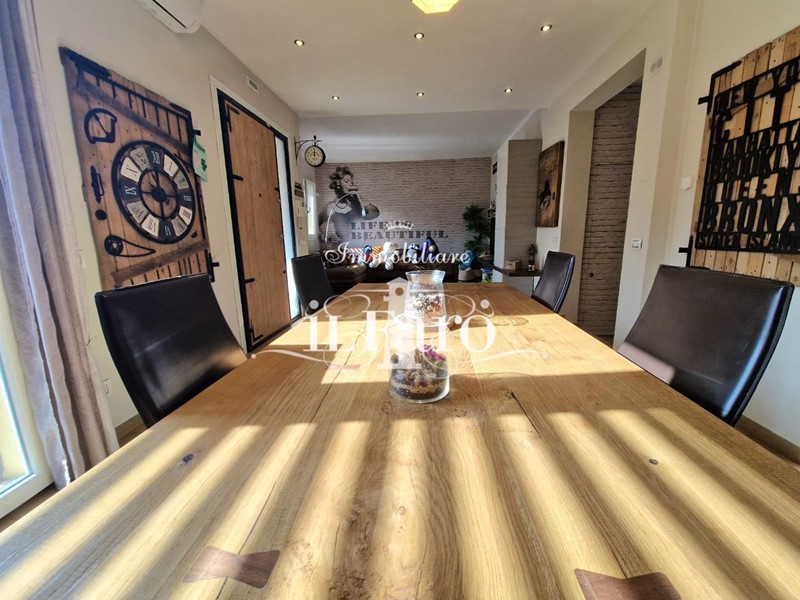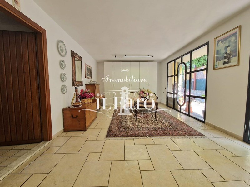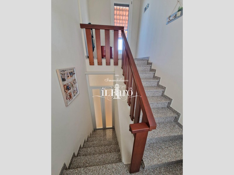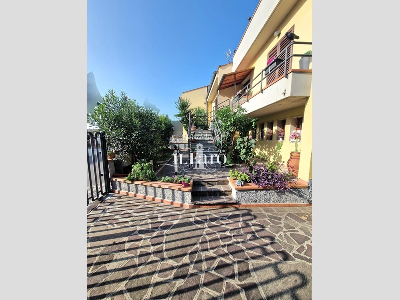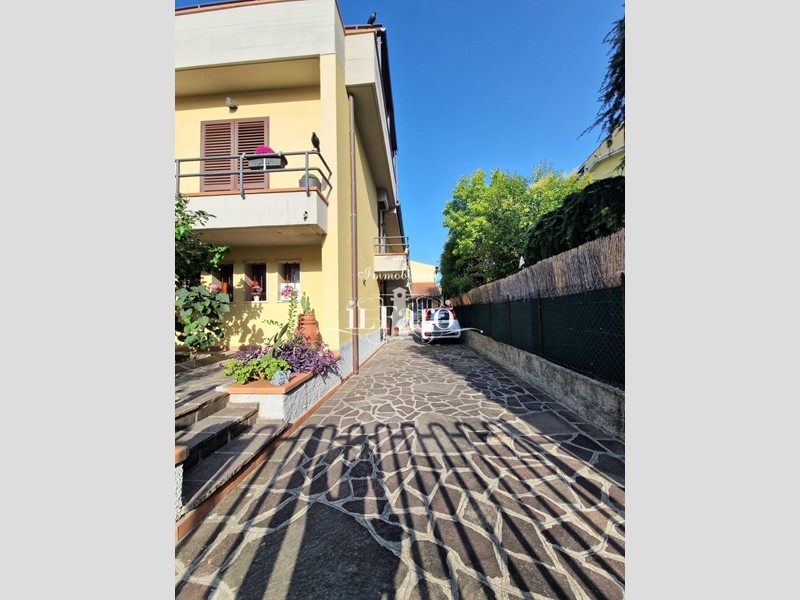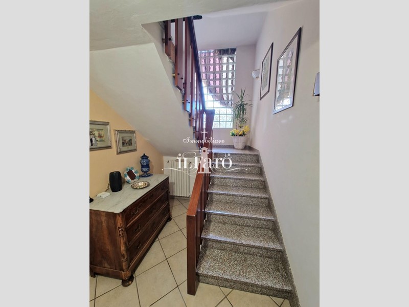 La proprietà è così composta: L'ingresso avviene tramite i due cancelli sia carrabile che pedonale dai quali si raggiunge lo splendido GIARDINO di 250 mq. circa in parte pavimentato e in parte lasciato a verde. Nella parte esterna è possibile parcheggiare, volendo numerose auto, le quali possono essere ricoverate in alternativa nello splendido GARAGE fuori terra di 36 mq. provvisto di punto acqua, punto luce, forno e camino in muratura. Internamente la proprietà pur essendo catastalmente una unica unità immobiliare è suddivisa di fatto in due appartamenti separati aventi entrambi INGRESSO INDIPENDENTE ma comunque collegati tra loro da comoda scala interna in muratura. Nello specifico il piano terreno ( altezza soffitti 2,45 ) è composto da: ampia sala ( volendo utilizzabile come camera matrimoniale ), tinello-cucina, locale attualmente utilizzato come camera matrimoniale, ripostiglio, lavanderia, bagno finestrato con doccia, secondo ripostiglio e centrale termica. L'appartamento al piano primo è composto da: Ingresso indipendente mediante scala esterna in muratura; entrando nell'abitazione troviamo una splendida e ampia zona giorno con cucinotto, che volendo, può essere chiuso per gli amanti della cucina separata, proseguendo tramite un disimpegno raggiungiamo la zona notte composta da tre camere da letto di cui una matrimoniale con bagno finestrato in camera e due doppie. Sempre dal disimpegno raggiungiamo due comodi ripostigli, un secondo grande bagno finestrato e per finire il vano scale che ci conduce sia al piano terreno che al piano secondo dove troviamo una comoda soffitta ed una splendida TERRAZZA ABITABILE di 35 mq. circa coperta da tettoia. Tutte le stanze ad eccezione dei bagni affacciano su balcone.