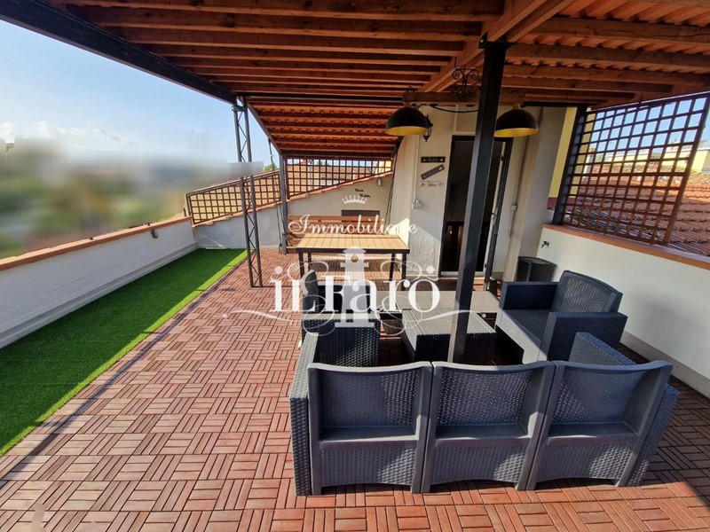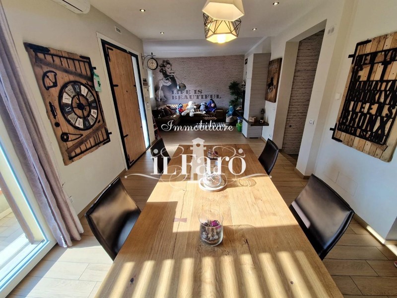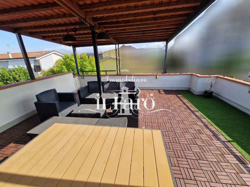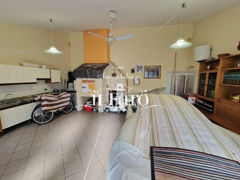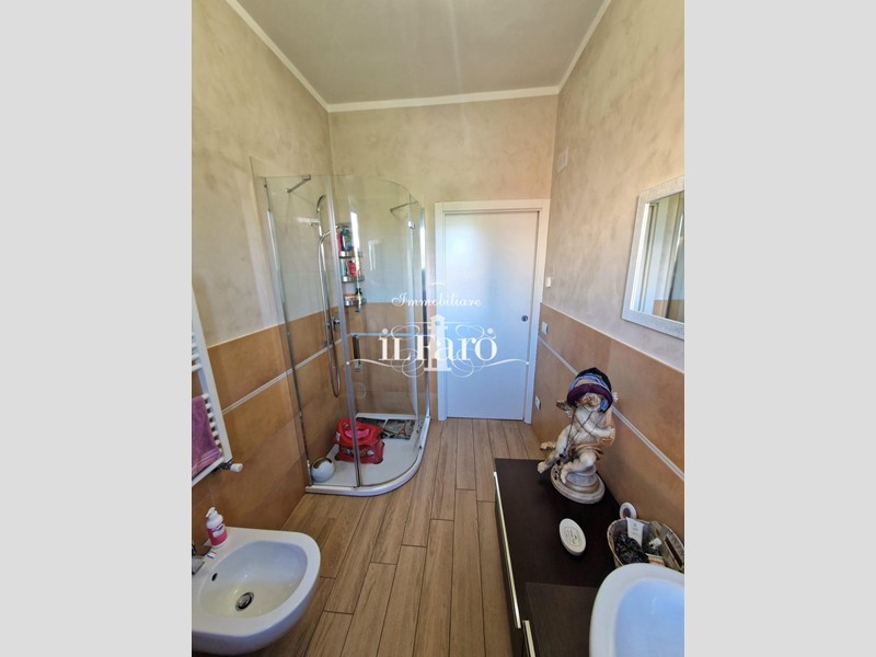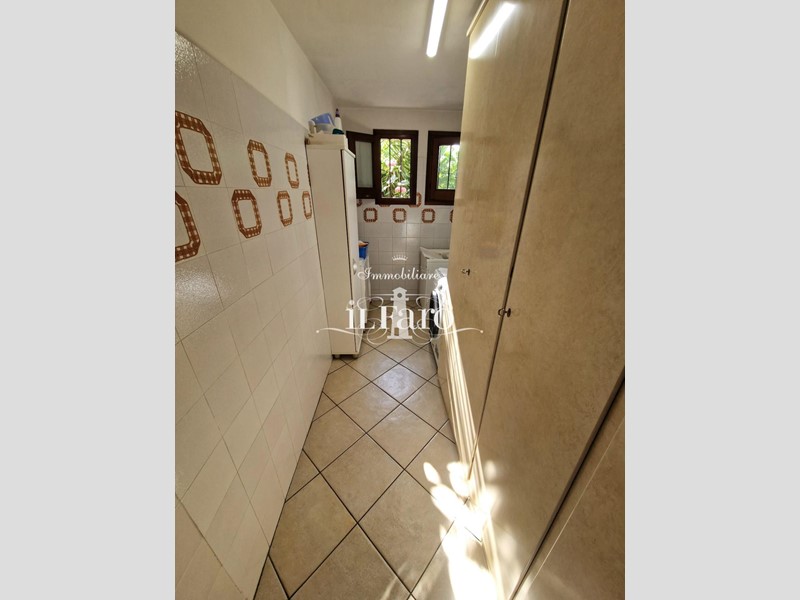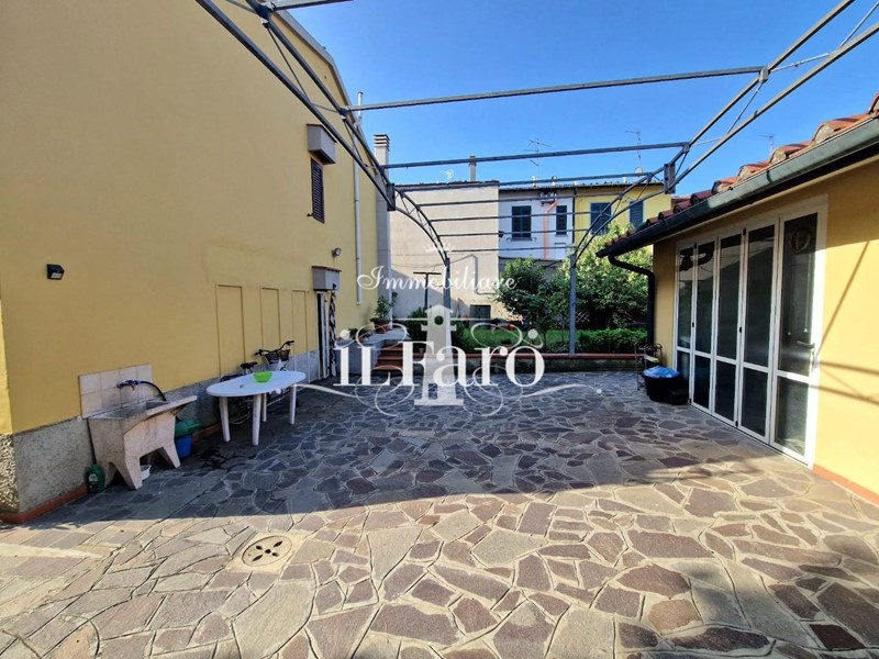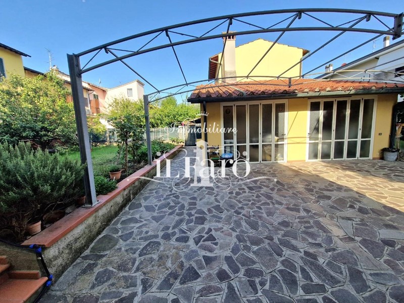 La proprietà è così composta: L'ingresso avviene tramite i due cancelli sia carrabile che pedonale dai quali si raggiunge lo splendido GIARDINO di 250 mq. circa in parte pavimentato e in parte lasciato a verde. Nella parte esterna è possibile parcheggiare, volendo numerose auto, le quali possono essere ricoverate in alternativa nello splendido GARAGE fuori terra di 36 mq. provvisto di punto acqua, punto luce, forno e camino in muratura. Internamente la proprietà pur essendo catastalmente una unica unità immobiliare è suddivisa di fatto in due appartamenti separati aventi entrambi INGRESSO INDIPENDENTE ma comunque collegati tra loro da comoda scala interna in muratura. Nello specifico il piano terreno ( altezza soffitti 2,45 ) è composto da: ampia sala ( volendo utilizzabile come camera matrimoniale ), tinello-cucina, locale attualmente utilizzato come camera matrimoniale, ripostiglio, lavanderia, bagno finestrato con doccia, secondo ripostiglio e centrale termica. L'appartamento al piano primo è composto da: Ingresso indipendente mediante scala esterna in muratura; entrando nell'abitazione troviamo una splendida e ampia zona giorno con cucinotto, che volendo, può essere chiuso per gli amanti della cucina separata, proseguendo tramite un disimpegno raggiungiamo la zona notte composta da tre camere da letto di cui una matrimoniale con bagno finestrato in camera e due doppie. Sempre dal disimpegno raggiungiamo due comodi ripostigli, un secondo grande bagno finestrato e per finire il vano scale che ci conduce sia al piano terreno che al piano secondo dove troviamo una comoda soffitta ed una splendida TERRAZZA ABITABILE di 35 mq. circa coperta da tettoia. Tutte le stanze ad eccezione dei bagni affacciano su balcone.
