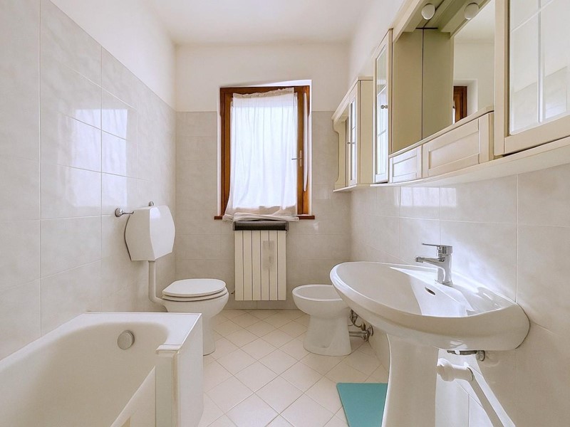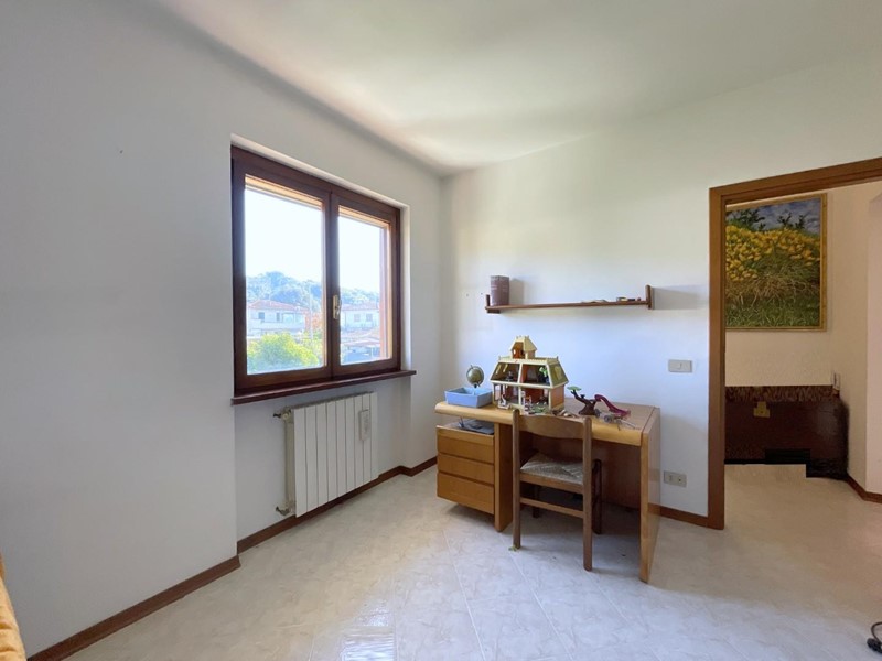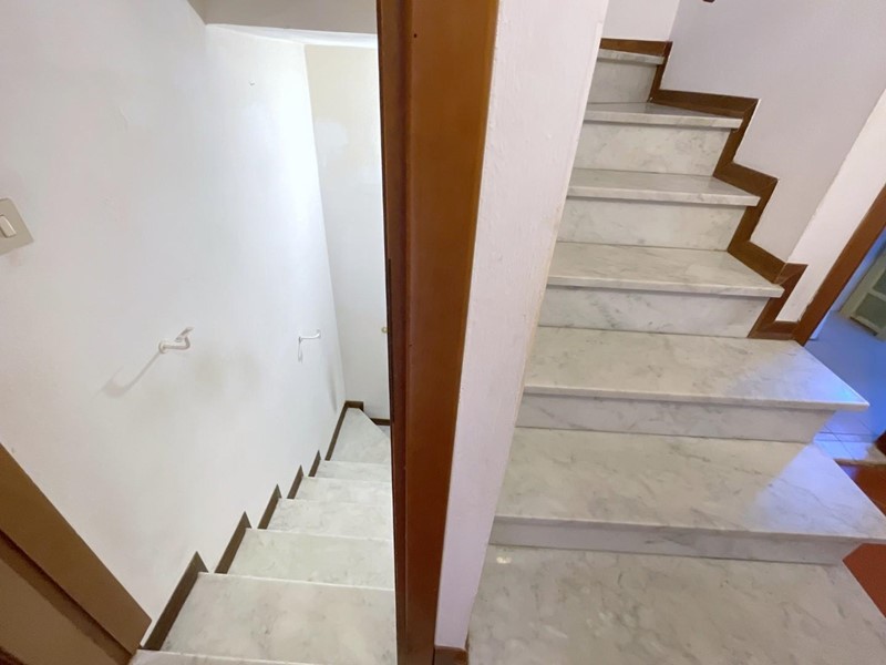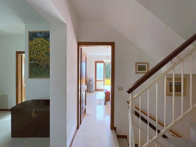 Salendo attraverso una raffinata scala in marmo si raggiunge il piano superiore, interamente dedicato alla zona notte. La camera matrimoniale, dotata di un grazioso balconcino, offre un ambiente accogliente e riservato, mentre le due camere doppie, ampie e ben illuminate, garantiscono spazi comodi per tutta la famiglia. A servizio di questo piano vi è un grande bagno finestrato, completo di vasca, perfetto per chi desidera un angolo di relax a fine giornata.