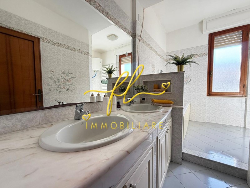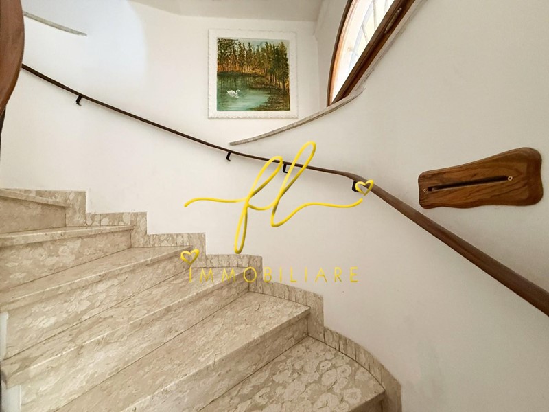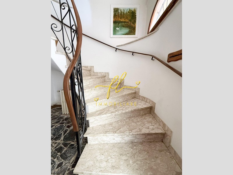 Salendo la splendida scala in marmo, si accede a un ampio salone, impreziosito da un vano a vista perfetto come studio o terza camera.