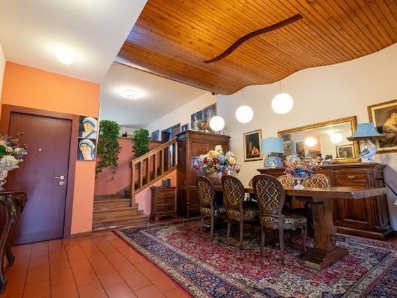 Altopascio ( LU ) - Villetta a schiera finale libera su tre lati composta da: ingresso nella sala pranzo con scala a vista, cucina abitabile, salendo tre scalini abbiamo un gran soggiorno molto ampio e luminoso e uno studio con accesso indipendente anche dall esterno. Sul solito piano abbiamo una camera matrimoniale, una camera doppia e un bagno completamente rifatto con doccia e finestrato. Al piano superiore troviamo un altra camera matrimoniale con bagno in camera e con accesso al balconcino privato. A corredo mansarda abitabile dove poter ricavare un altra camera grande. Al piano seminterrato con accesso dall 'interno dell' abitazione abbiamo una piccola tavera con un enorme camino a legna ideale x cene invernali o come possibile sala giochi e accesso al garage con lavanderia. L immobile è corredato da resede privata pavimentata per i posti auto e con pergolato oltre a circa 900 mq di giardino privato tutto recintato e con possibilità di un ulteriore accesso carrabile. Immobile in ottime condizioni, subito abitabile e a pochi passi dal centro del paese.