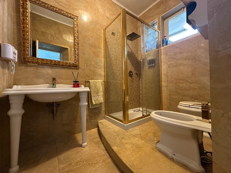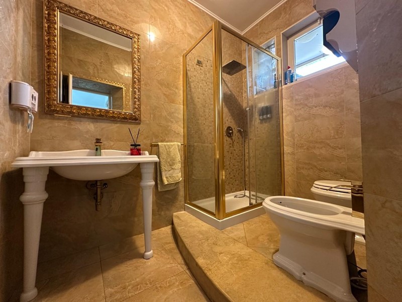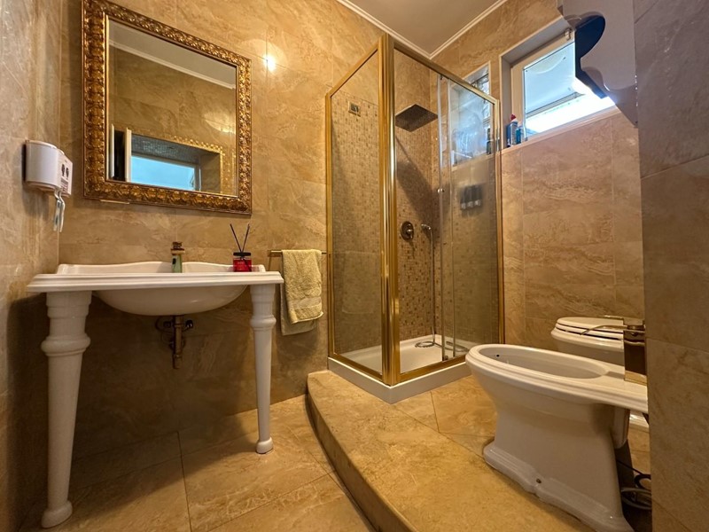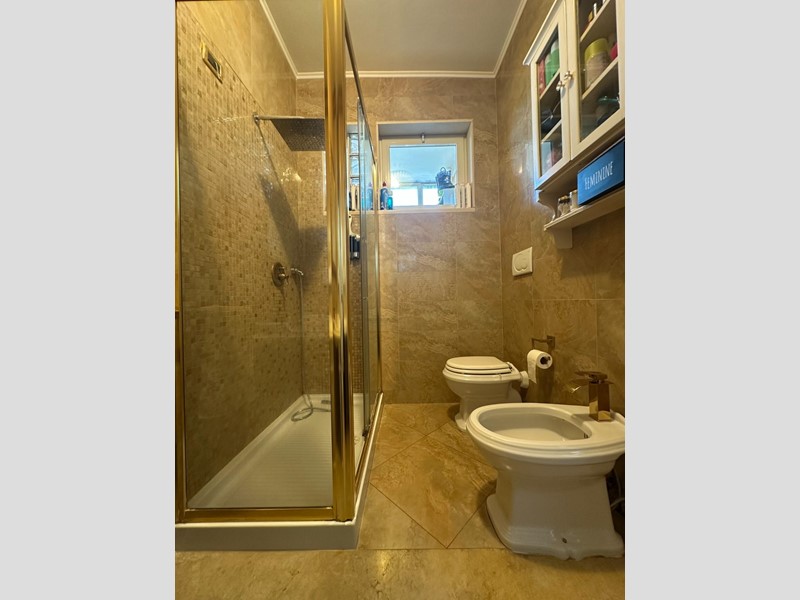 La zona notte, accessibile tramite disimpegno, offre tre camere da letto, di cui una attualmente utilizzata come capiente e funzionale vano armadi ed un ampio bagno con finestra, dotato di moderna doccia e finiture eleganti e moderne.