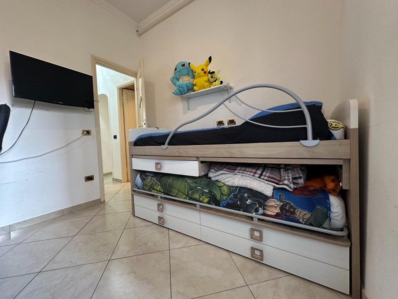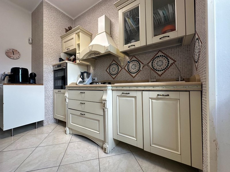 L’ingresso si apre sulla luminosa zona giorno, dove troviamo un’accogliente sala di circa 20 mq con accesso diretto al balcone fronte strada, perfetto per momenti di relax o colazioni all’aria aperta. La cucina abitabile, separata e ben organizzata, è servita da un secondo balcone verandato, attualmente adibito a pratica zona lavanderia con caldaia.
