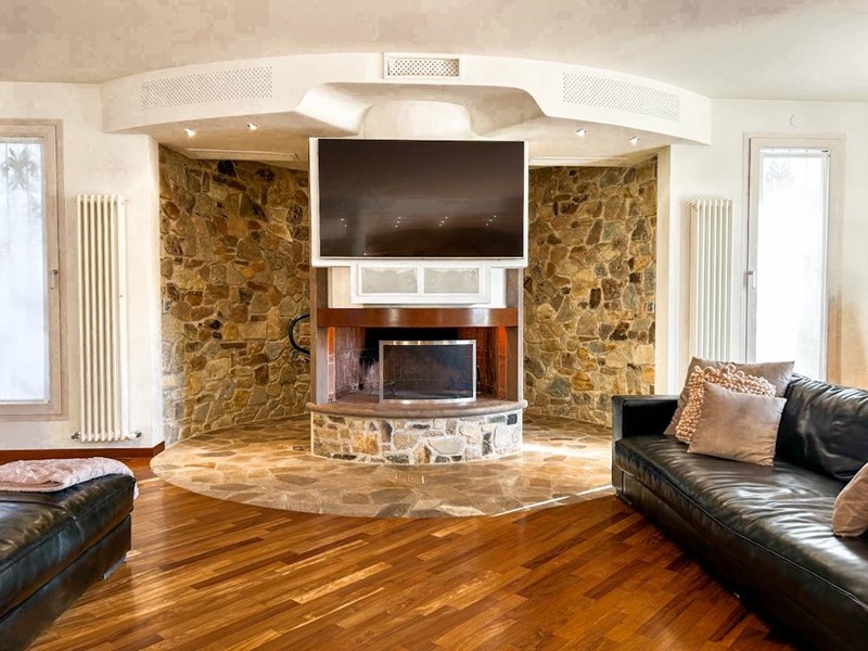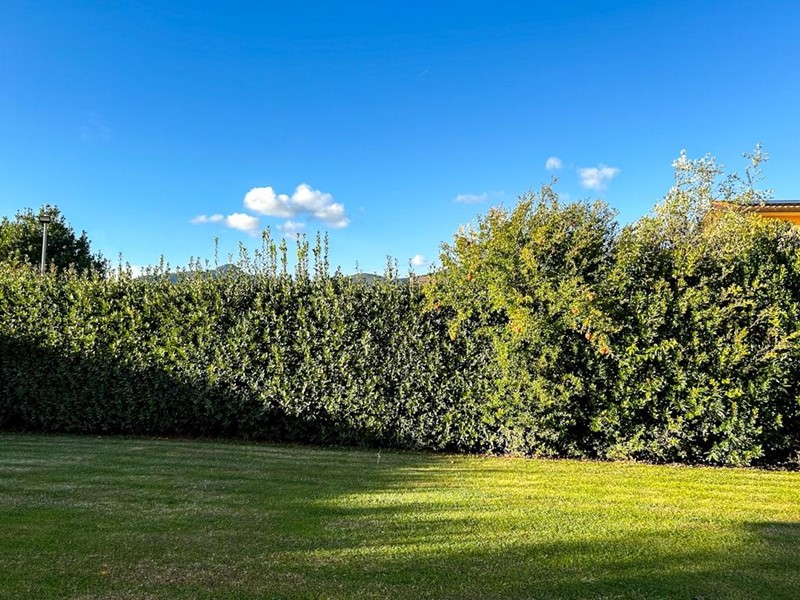 Completano la proprietà un ampio giardino piantumato, varie zone relax, e box auto doppio. Possibilità di realizzare una piscina.