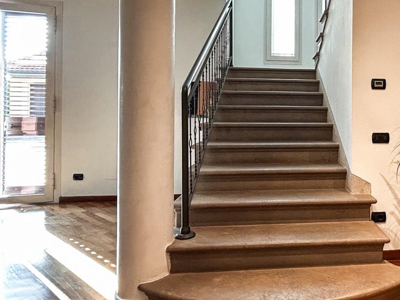 • al piano terra ampio ingresso, doppio soggiorno con camino, zona pranzo, cucina abitabile, locale lavanderia ampia dispensa/ripostiglio e bagno di servizio.