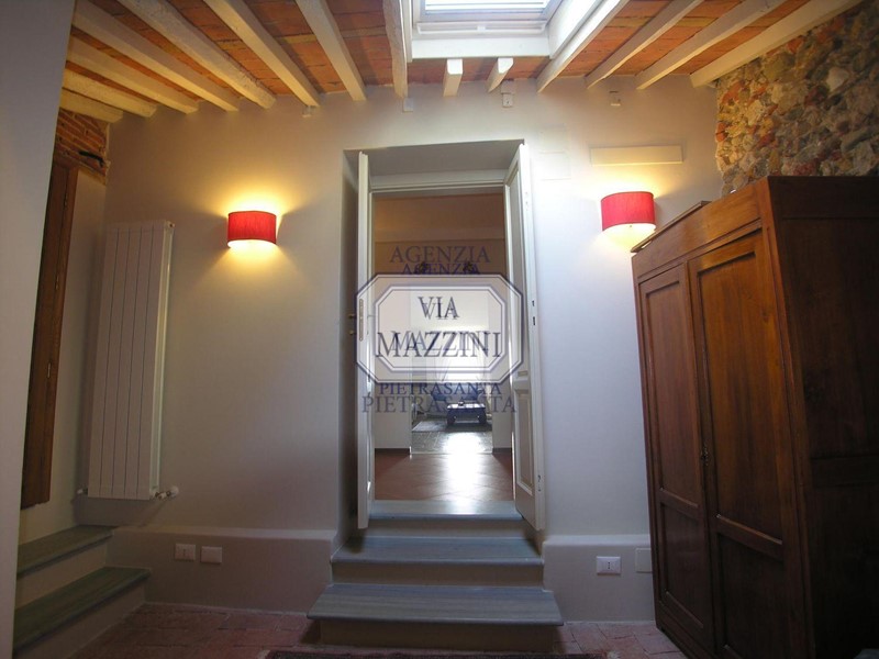 IN ESCLUSIVA Affitto Centro Storico di Pietrasanta con vista mare e sul centro storico, in una delle zone più ricercate, ( Via Poggetto ) luminoso e comodo appartamento dotato di aria condizionata, ben distribuito così articolato: Ampio ingresso, grande sala, cucina abitabile, 3 camere di cui una con servizio en suite con doccia, 1 servizio con vasca. Pavimenti in mezzane antiche originali. L' appartamento è arredato, l'accesso al vano mansardato può essere indipendente dal vano scale, ( doppio ingresso ) così da creare una dependance con privacy. La zona che domina sul Centro Storico è molto tranquilla, con possibilità di affittare 1 posto auto e bici.