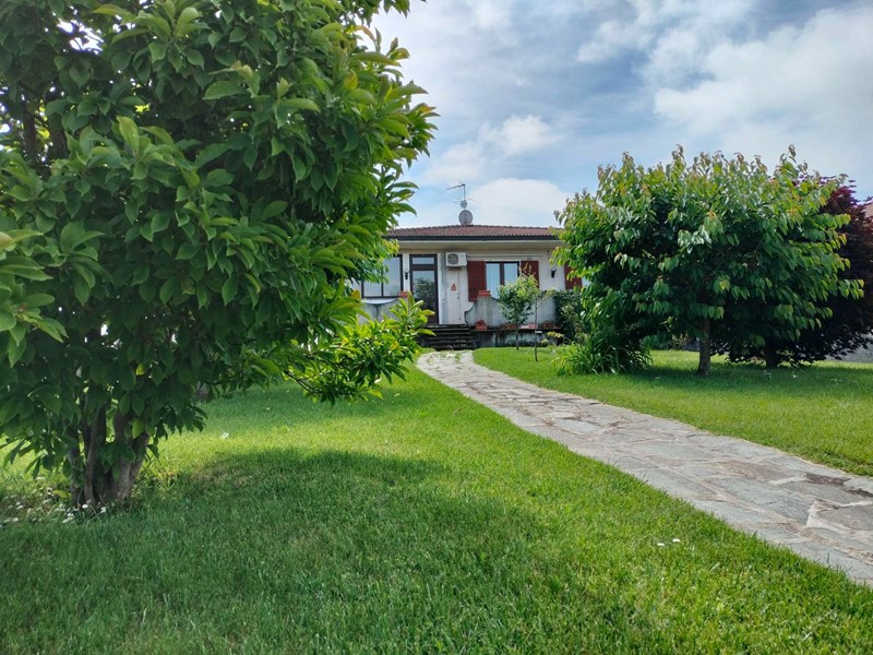 Immersa nel verde e nella tranquillità delle frazioni, a Mandrogne, casa indipendente su tutti quattro lati disposta su un unico piano con ampio giardino piantumato di esclusiva proprietà oltre al cortile ed un piccolo orto. La casa si presenta in ottimo stato in ottimo stato con gli impianti elettrico, idraulico e di riscaldamento a norma. Dispone di un ottima metratura suddivisa in ampi spazi: ingresso, salone con camino a legna, cucina abitabile, tre camere matrimoniali, due bagni, un locale verandato ed un balcone. Al piano seminterrato, collegato internamente con una scala a chiocciola, grande locale box di 120 mq., un locale adibito a magazzino, locale lavanderia ed un piccolo locale tecnico.