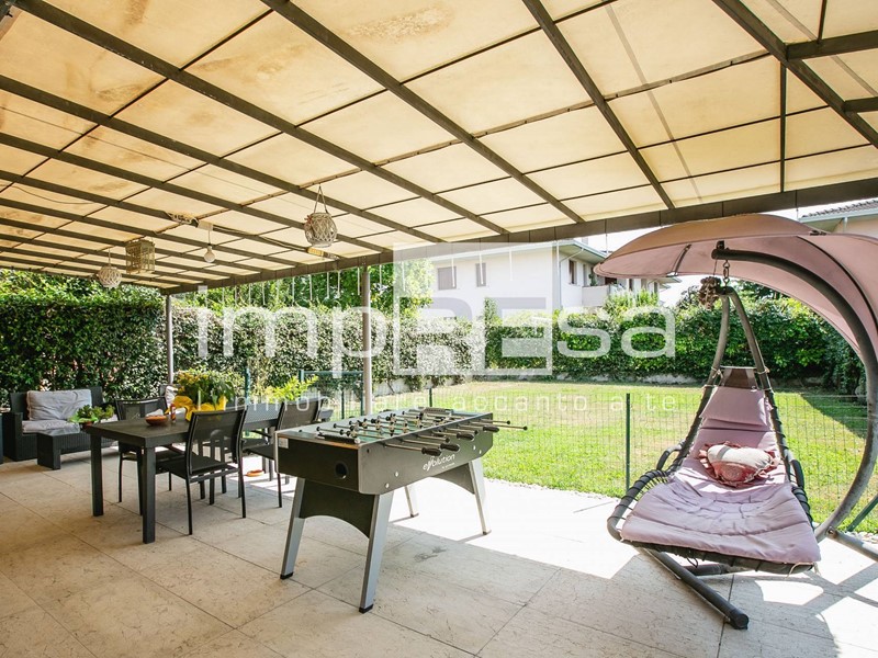 Il giardino è ampio, curato ed arricchito da una grande pompeiana, ideale per cene allaperto, momenti di relax o serate in compagnia: unestensione naturale della zona giorno, che rende questa abitazione unica nel suo genere.