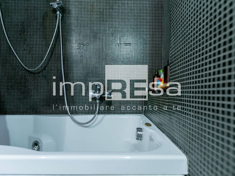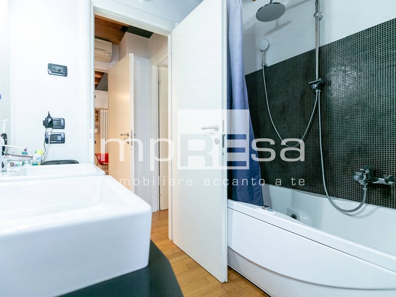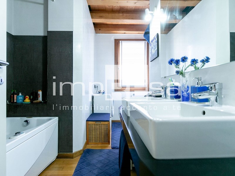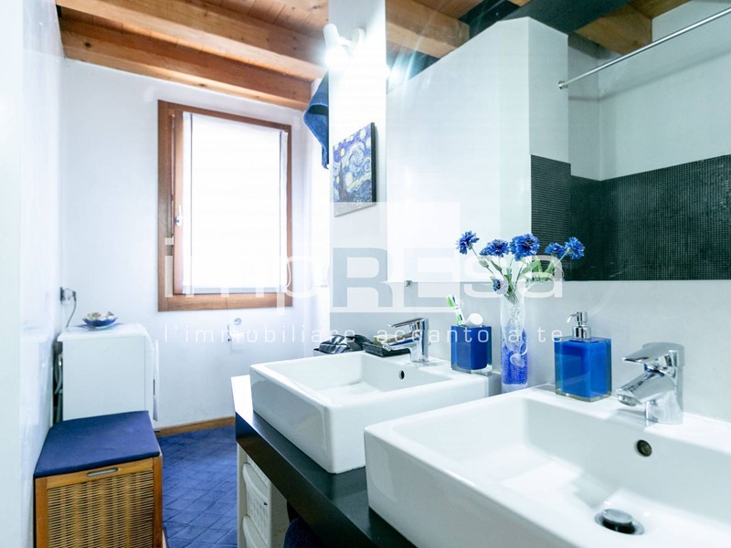 La zona notte, ospita una camera matrimoniale, una seconda camera singola oggi adibita a studio e un bagno elegante, impreziosito da un raffinato mosaico e dotato di vasca idromassaggio, perfetta per concedersi momenti di benessere.