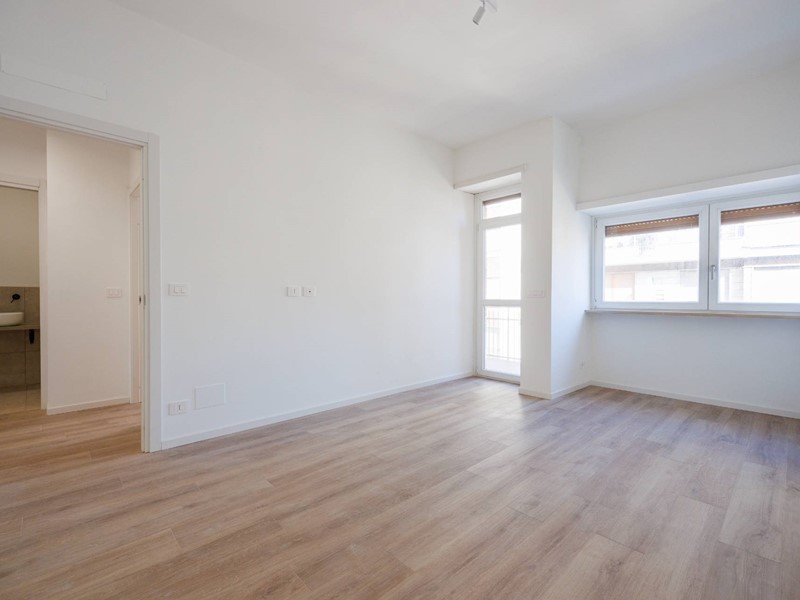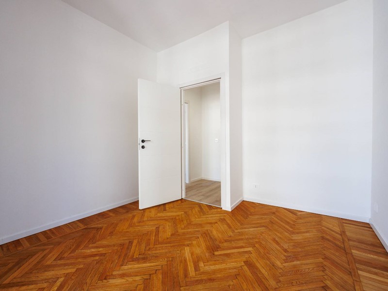 Ingresso su luminosa zona giorno di 26 mq con predisposizione per angolo cottura e accesso al balcone con affaccio su interno cortile. Il disimpegno separa la zona notte, composta da due camere da letto spaziose: una di 20 mq e una di 12 mq, entrambe con accesso al secondo balcone con affaccio su Via Lancia.