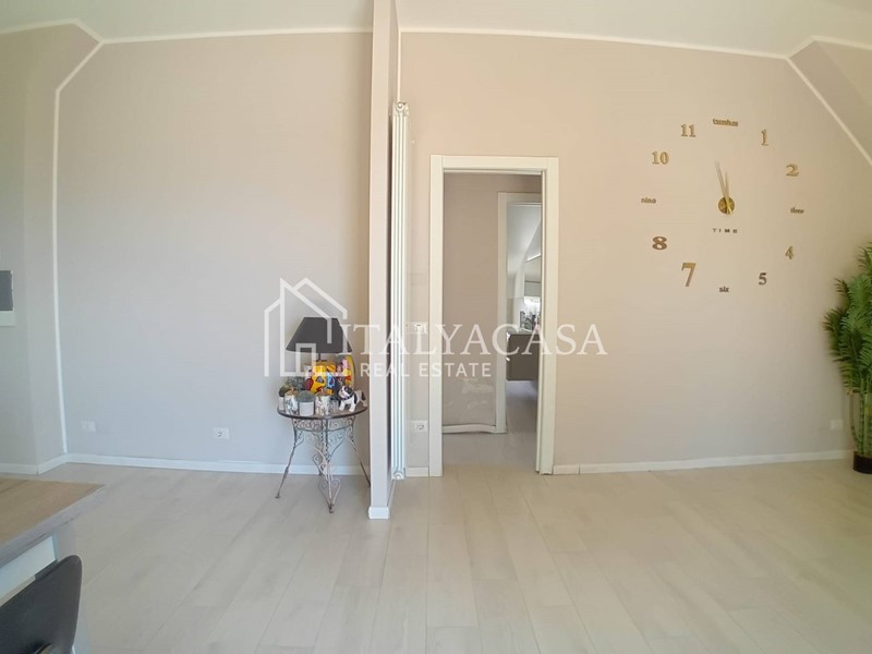 Essendo un sottotetto, lappartamento presenta le tipiche inclinazioni del tetto, ma le altezze sono comode in ogni stanza: si cammina in piedi senza doversi abbassare, come si può notare chiaramente dalle foto.