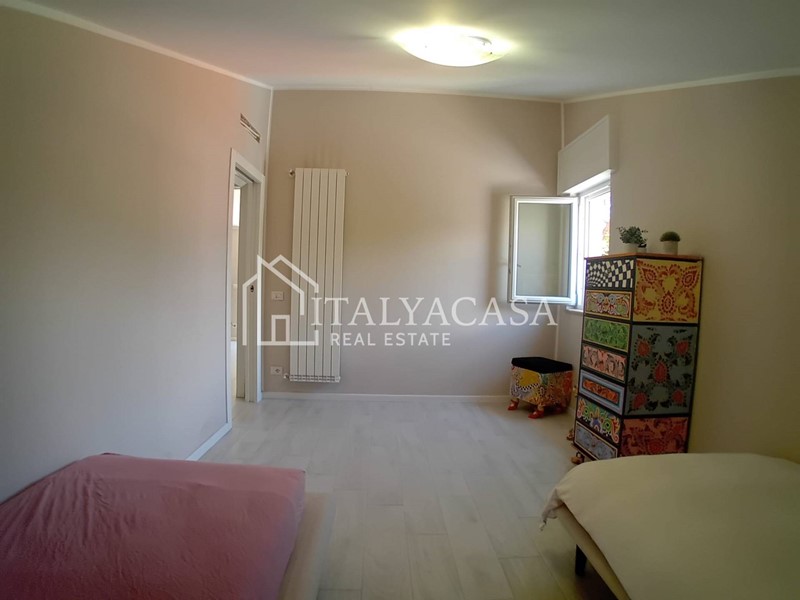 Labitazione è stata completamente rinnovata, sia internamente che esternamente, ed è pronta per essere abitata. Si accede da un vialetto privato con cancello elettrico e, salendo pochi gradini di proprietà esclusiva, si arriva allingresso dellappartamento.