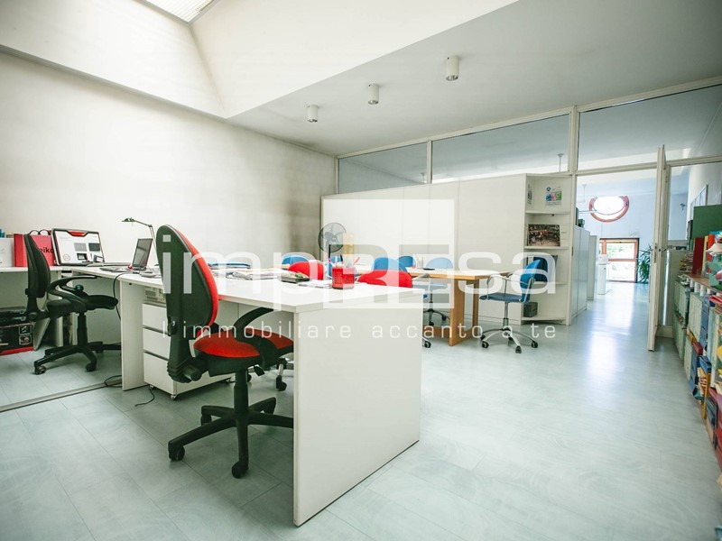 Al primo piano, infatti, si sviluppa una superficie di circa 150 mq commerciali destinata attualmente a uso ufficio.