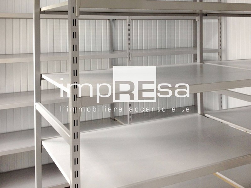 Questo spazio è caratterizzato da una struttura a scaffalature portanti che, oltre a servire come stoccaggio, funge anche da soppalco strutturale, sorreggendo parte degli uffici del piano superiore.