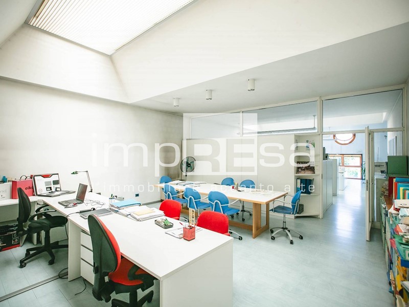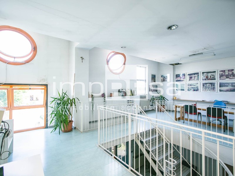 Al primo piano, infatti, si sviluppa una superficie di circa 150 mq commerciali destinata attualmente a uso ufficio.